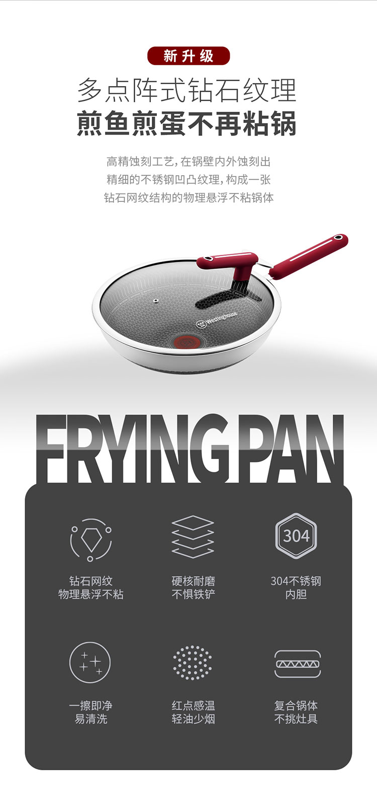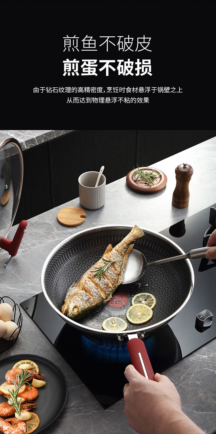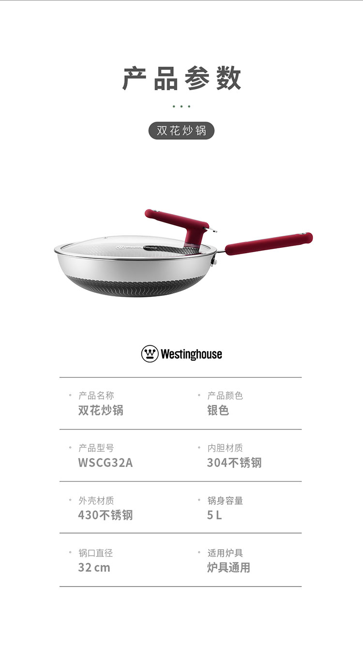 商品名称:(世星阳光)+WY西屋 双花炒锅 5L 锅口直径 32cm WSCG32A 多点阵式 钻石纹理 煎鱼煎蛋不再粘锅