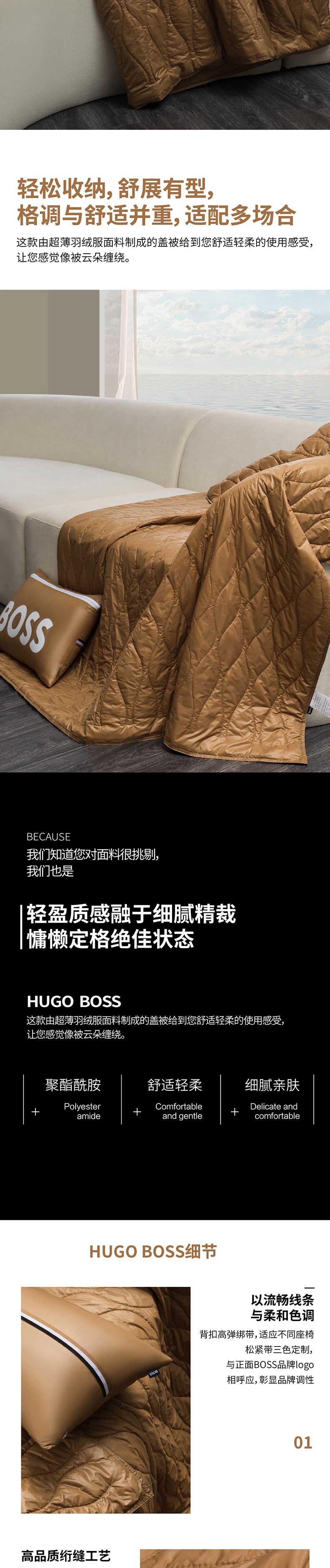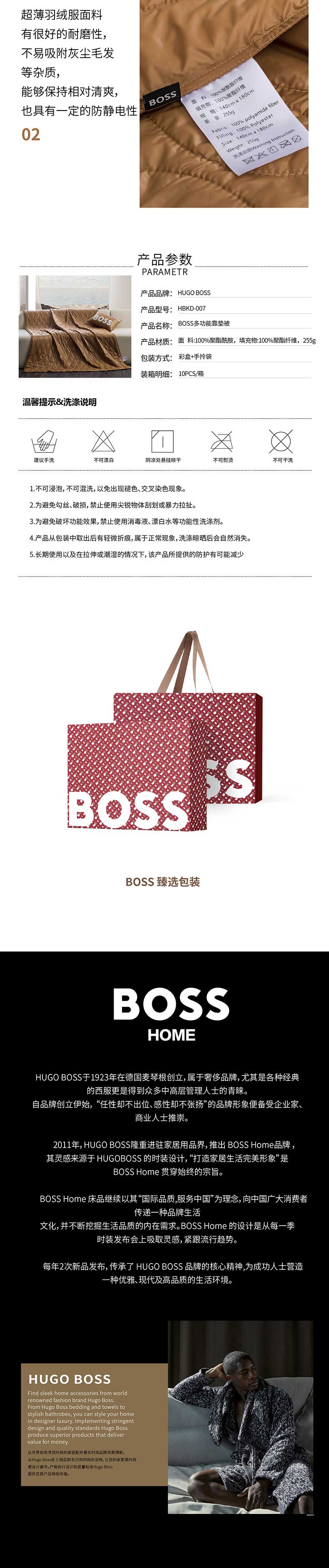 商品名称:(世星阳光)+ HUGO BOSS 多功能靠垫被 被芯1400*1800mm靠垫套300*450mm 255g 暖调驼色低调高级 轻松收纳