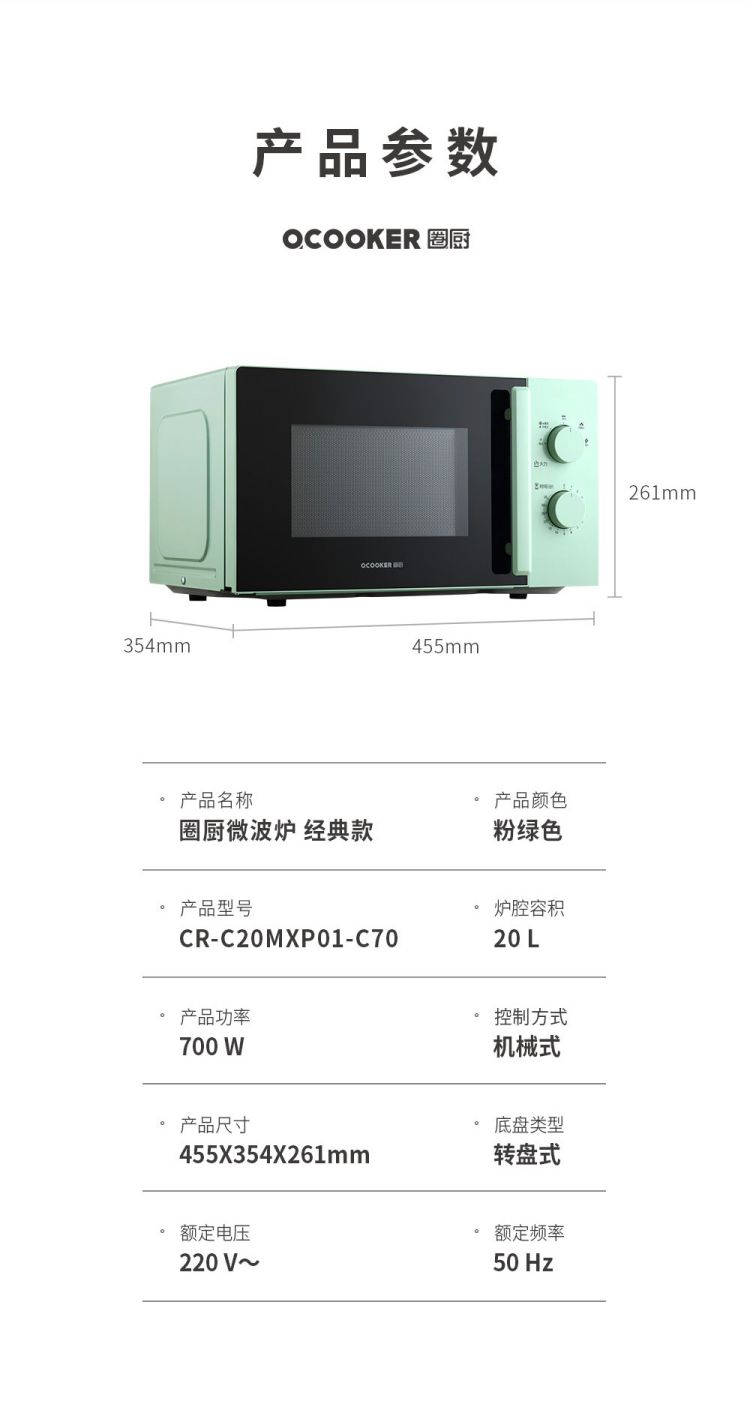 商品名称:(世星阳光)+圈厨-城市丛林系列微波炉-经典款 20L CR-C20MXP01-C70 五档火力 700w大功率