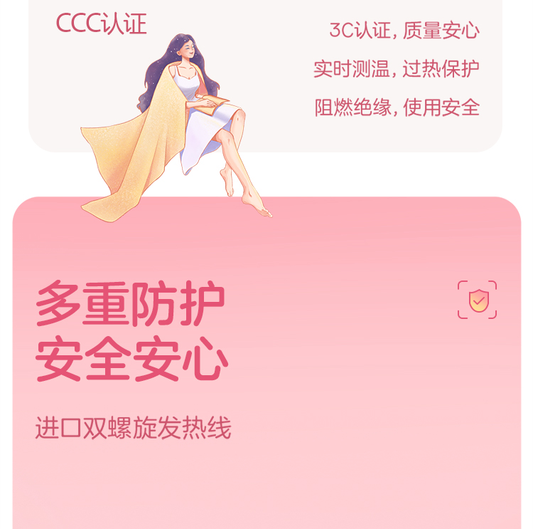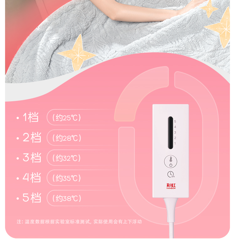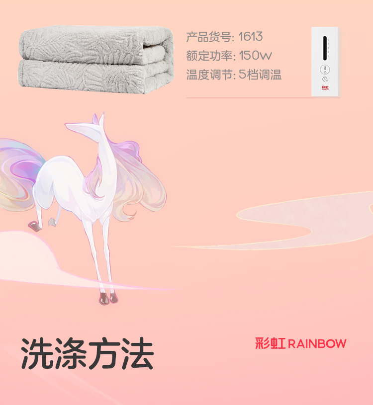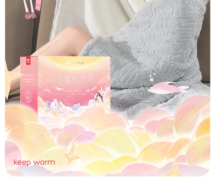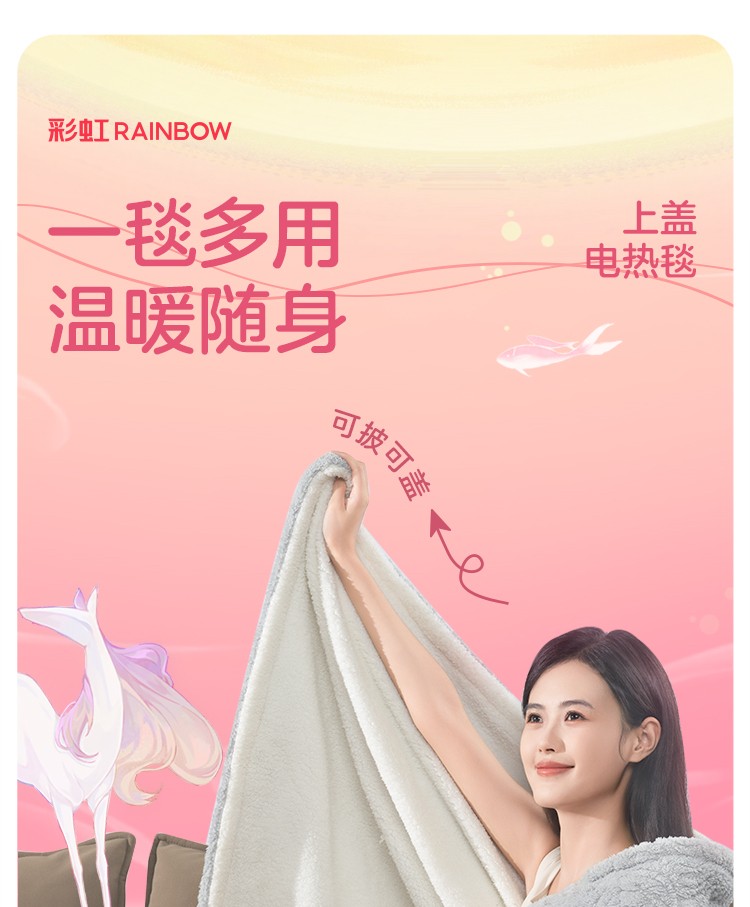 (世星阳光)+彩虹1613 彩虹上盖电热毯(暖身毯)1.3mx1.6m安全机洗 可披可盖