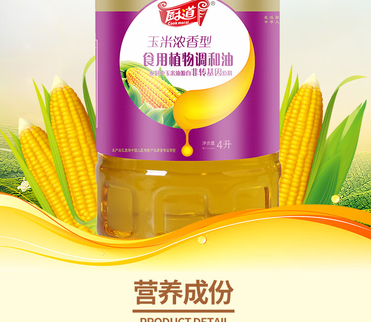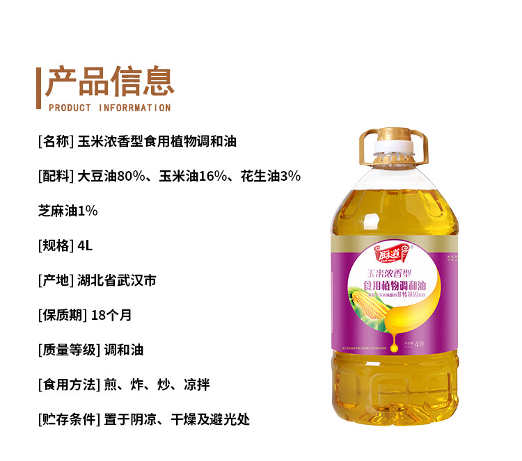 商品名称:(巨邦佑)BJ+厨道 玉米浓香调和油4L 精选优质原料营养健康美味食用油