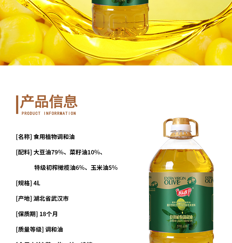 商品名称:(巨邦佑)BJ+厨道 初榨橄榄调和油4L 精选优质原料营养健康美味食用油