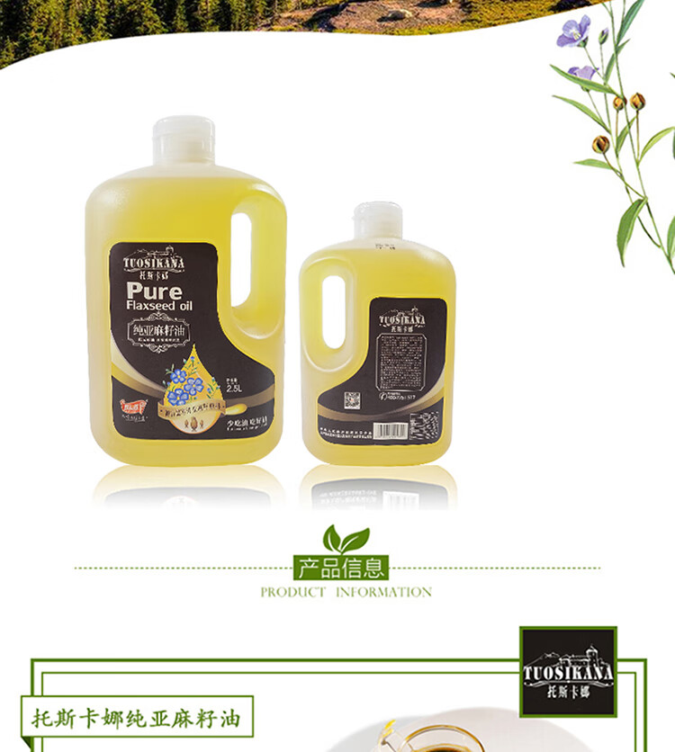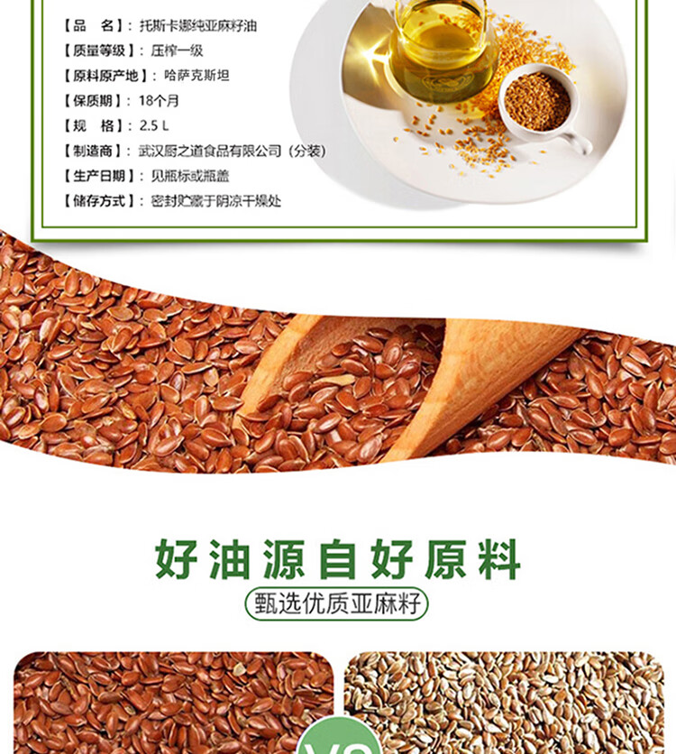 商品名称:(巨邦佑)BJ+厨道 托斯卡娜纯亚麻籽油2.5L 精选优质原料营养健康美味食用油