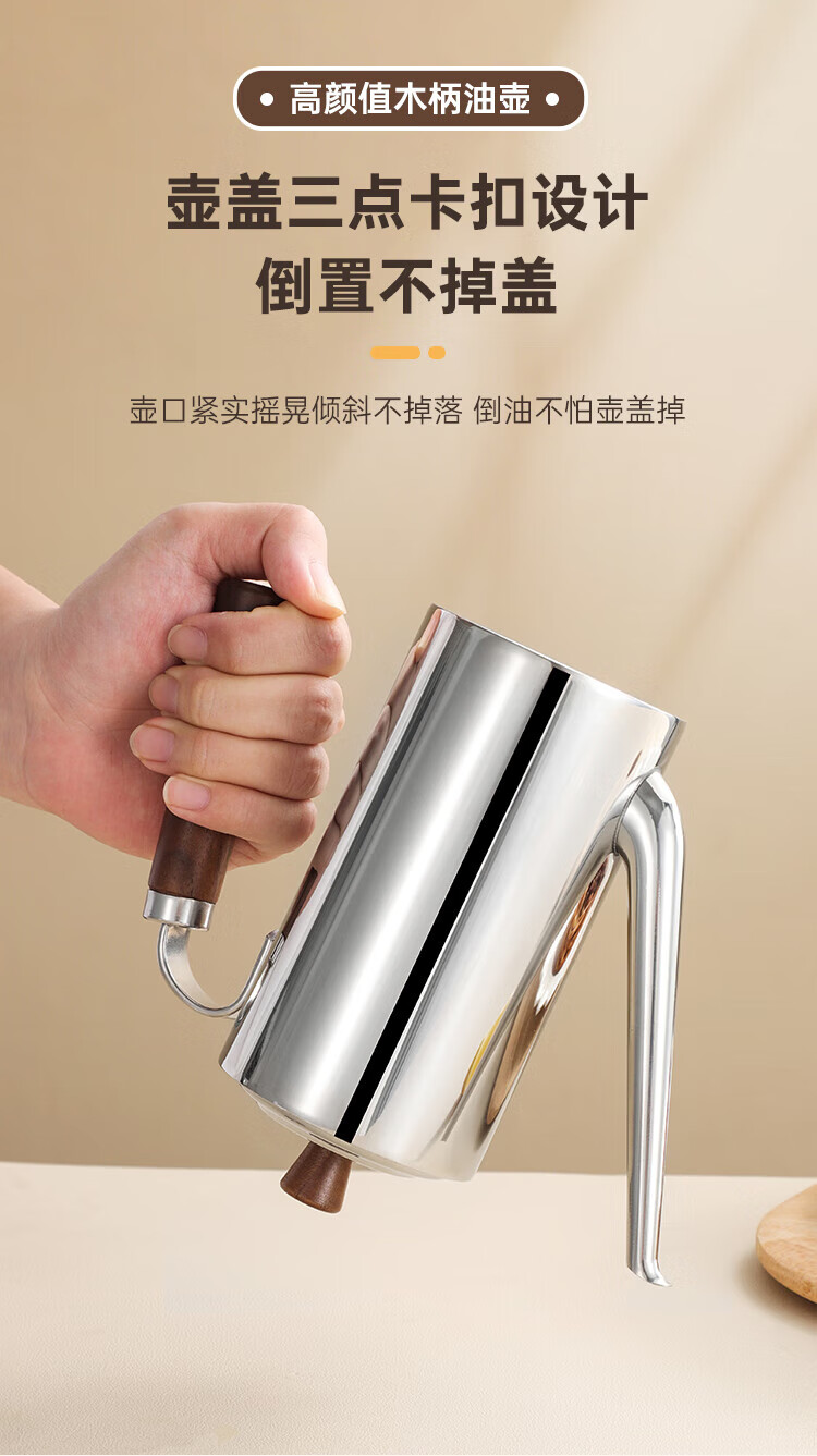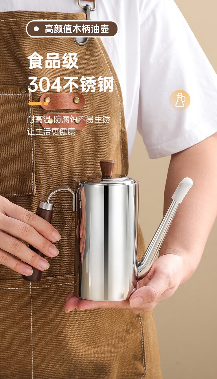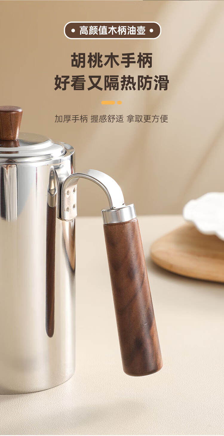 (巨邦佑)BJ+物芯质造304木柄油壶 高颜值经久耐用两种规格控油不漏油抗腐防锈清洗方便