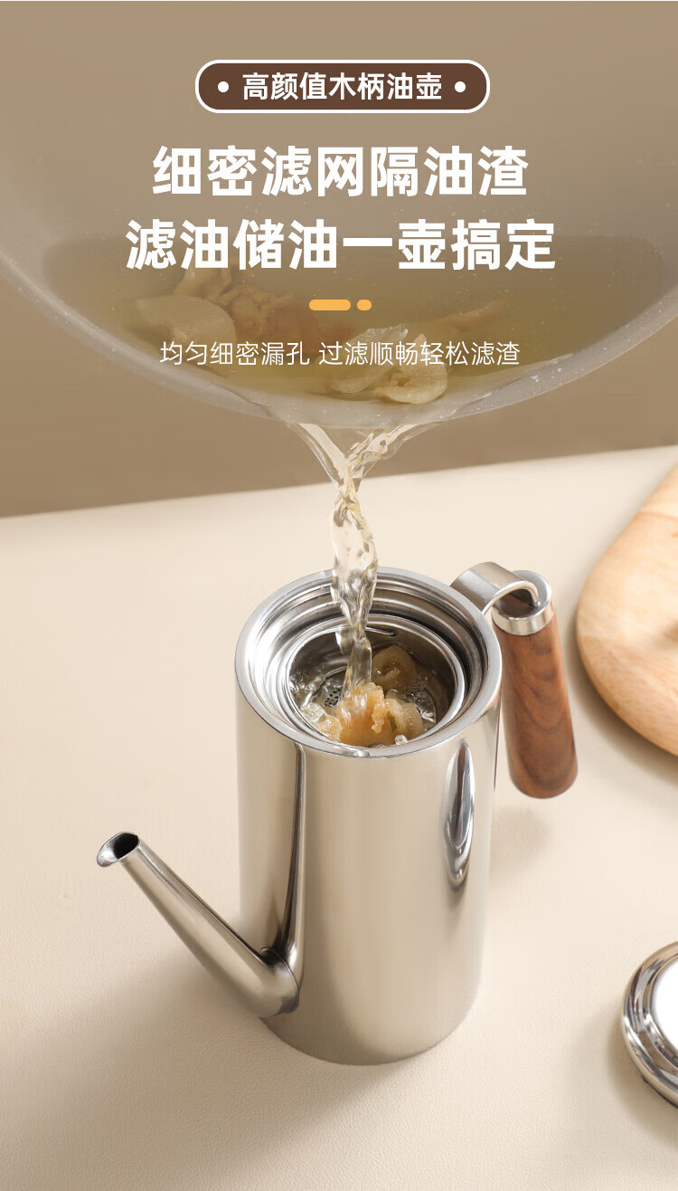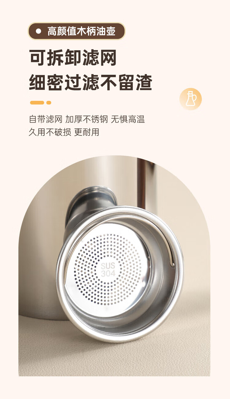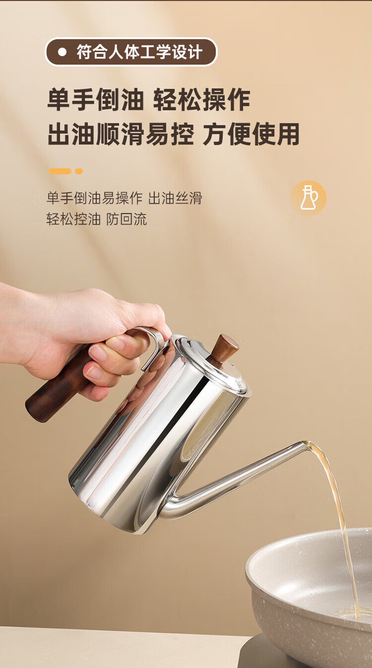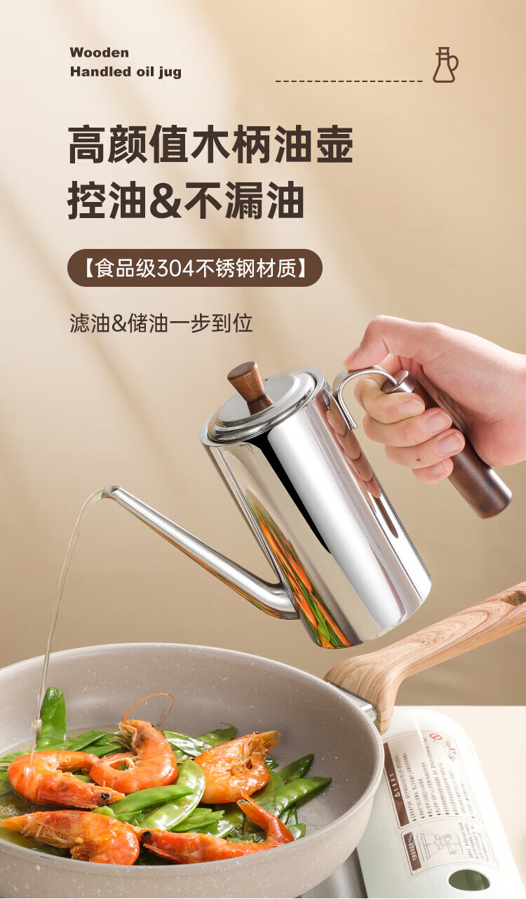 (巨邦佑)BJ+物芯质造304木柄油壶 高颜值经久耐用两种规格控油不漏油抗腐防锈清洗方便