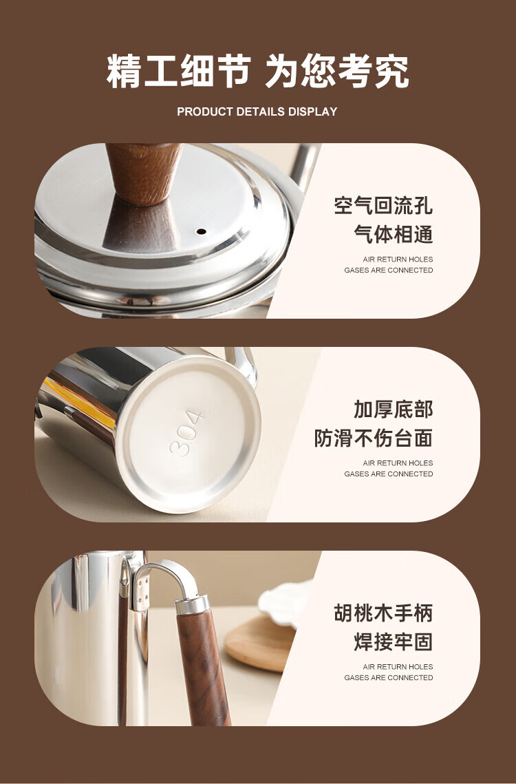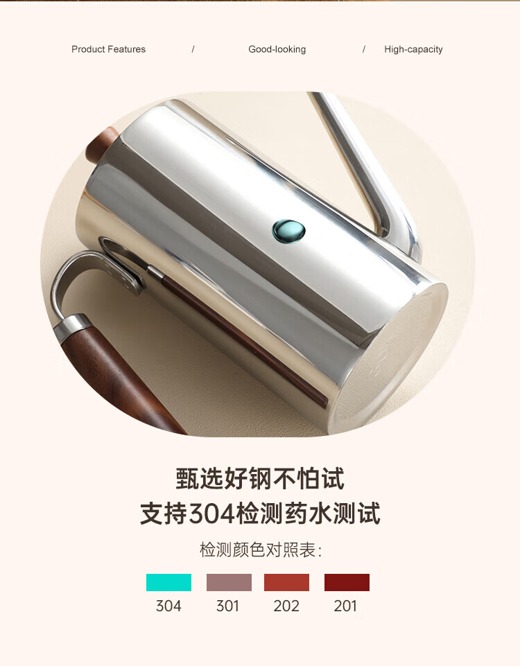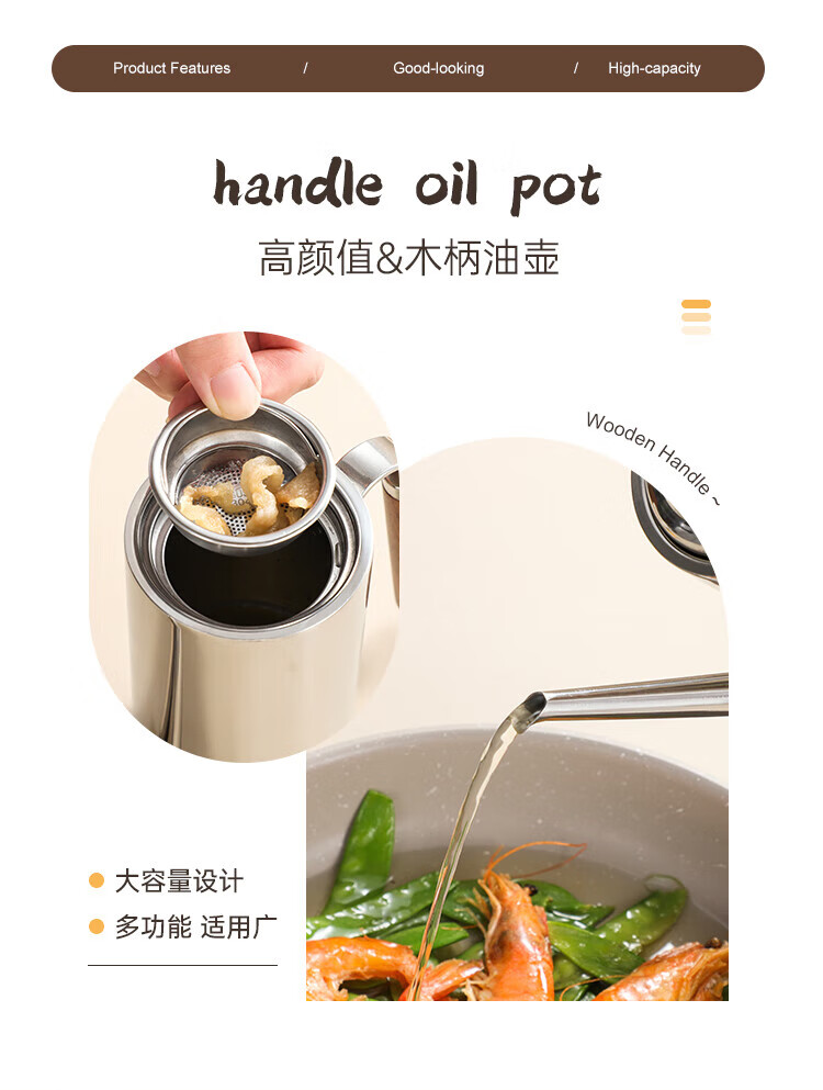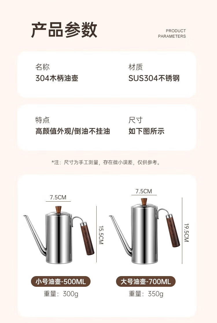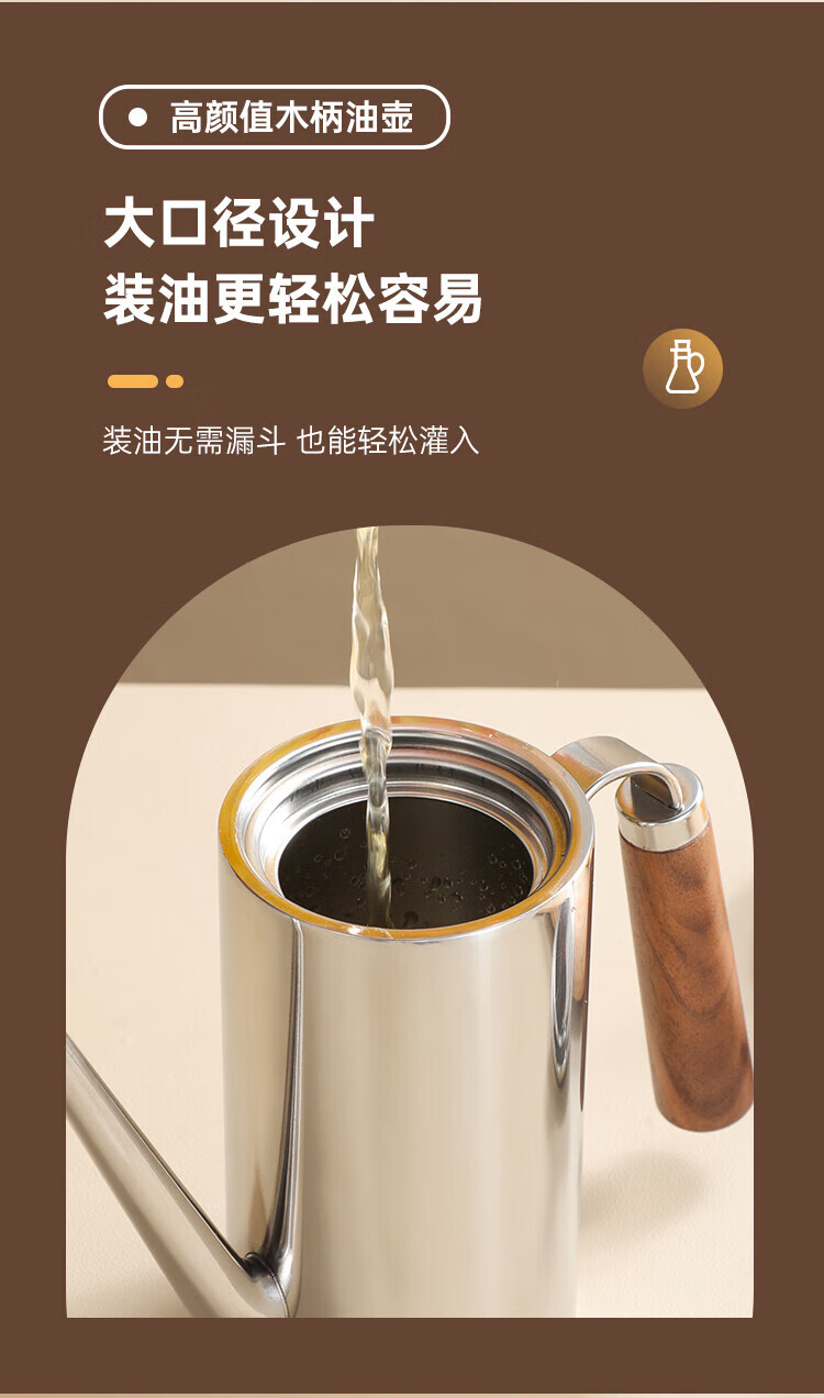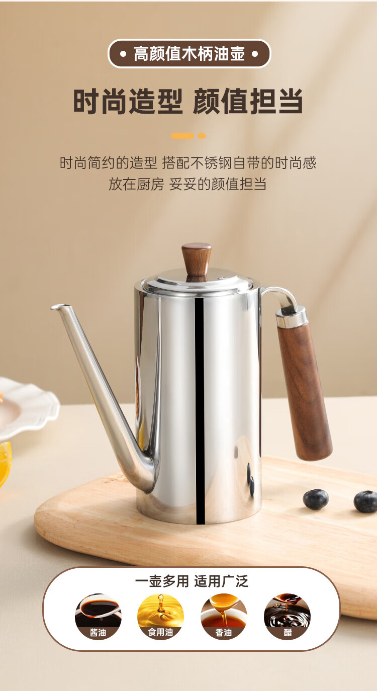 商品名称:(巨邦佑)BJ+物芯质造304木柄油壶 高颜值经久耐用两种规格控油不漏油抗腐防锈清洗方便