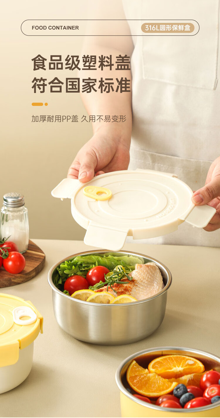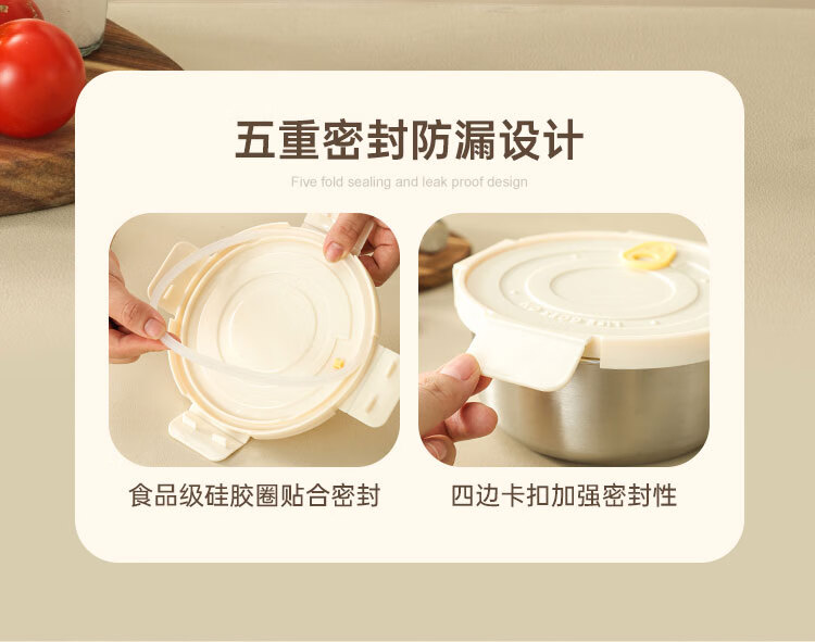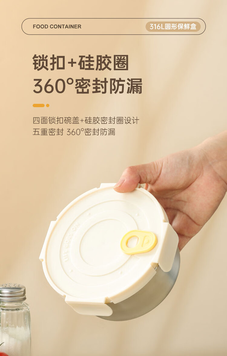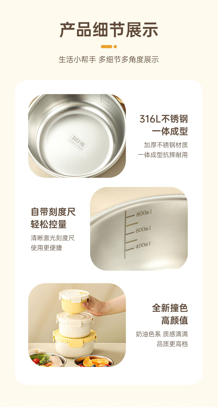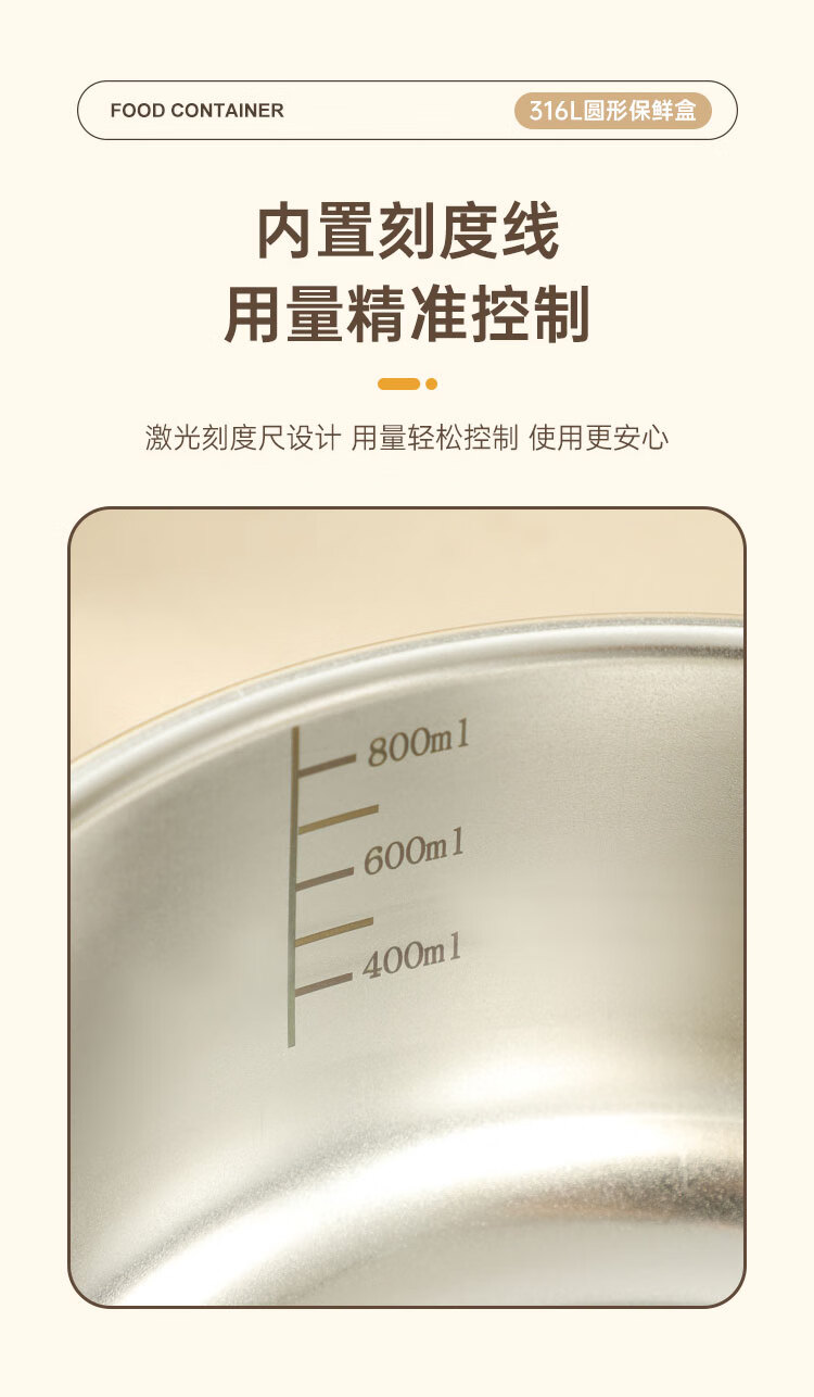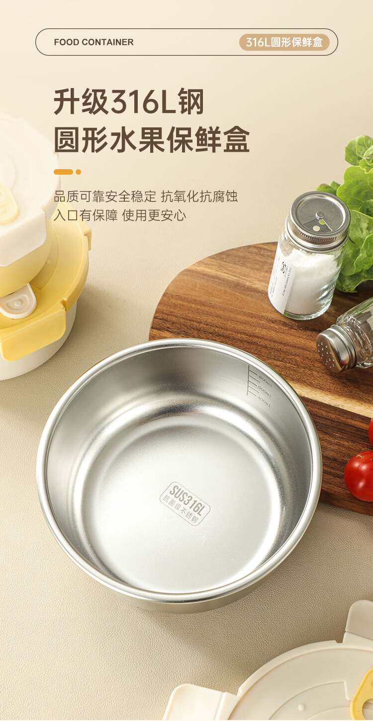 商品名称:(巨邦佑)BJ+物芯质造OVIV 316L萌趣保鲜盒本色 (米白盖) 带刻度线密封防漏
