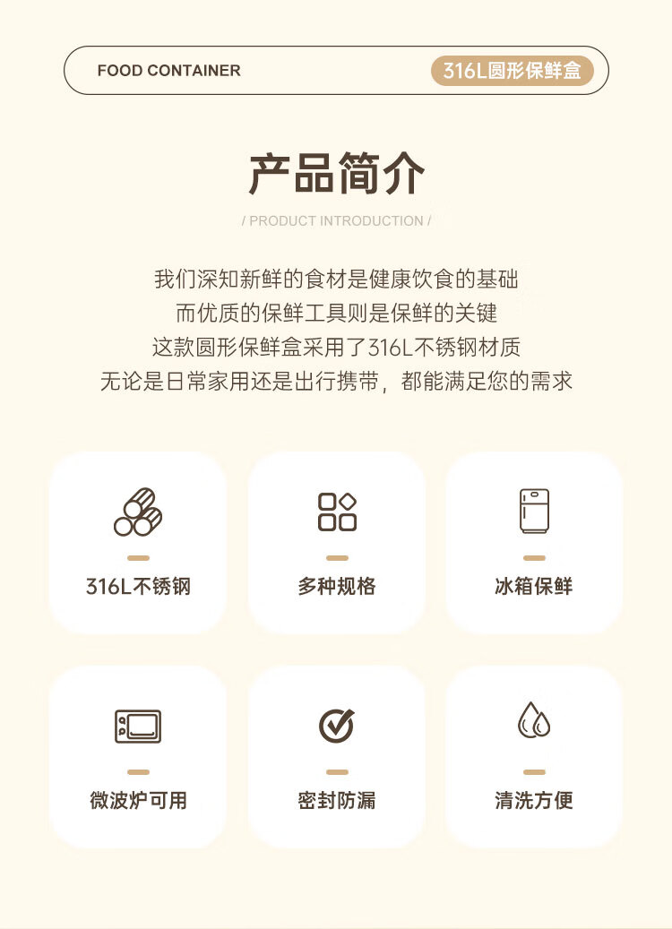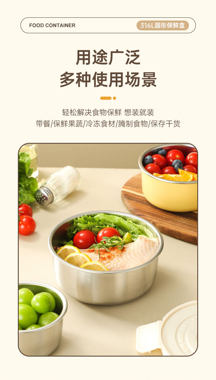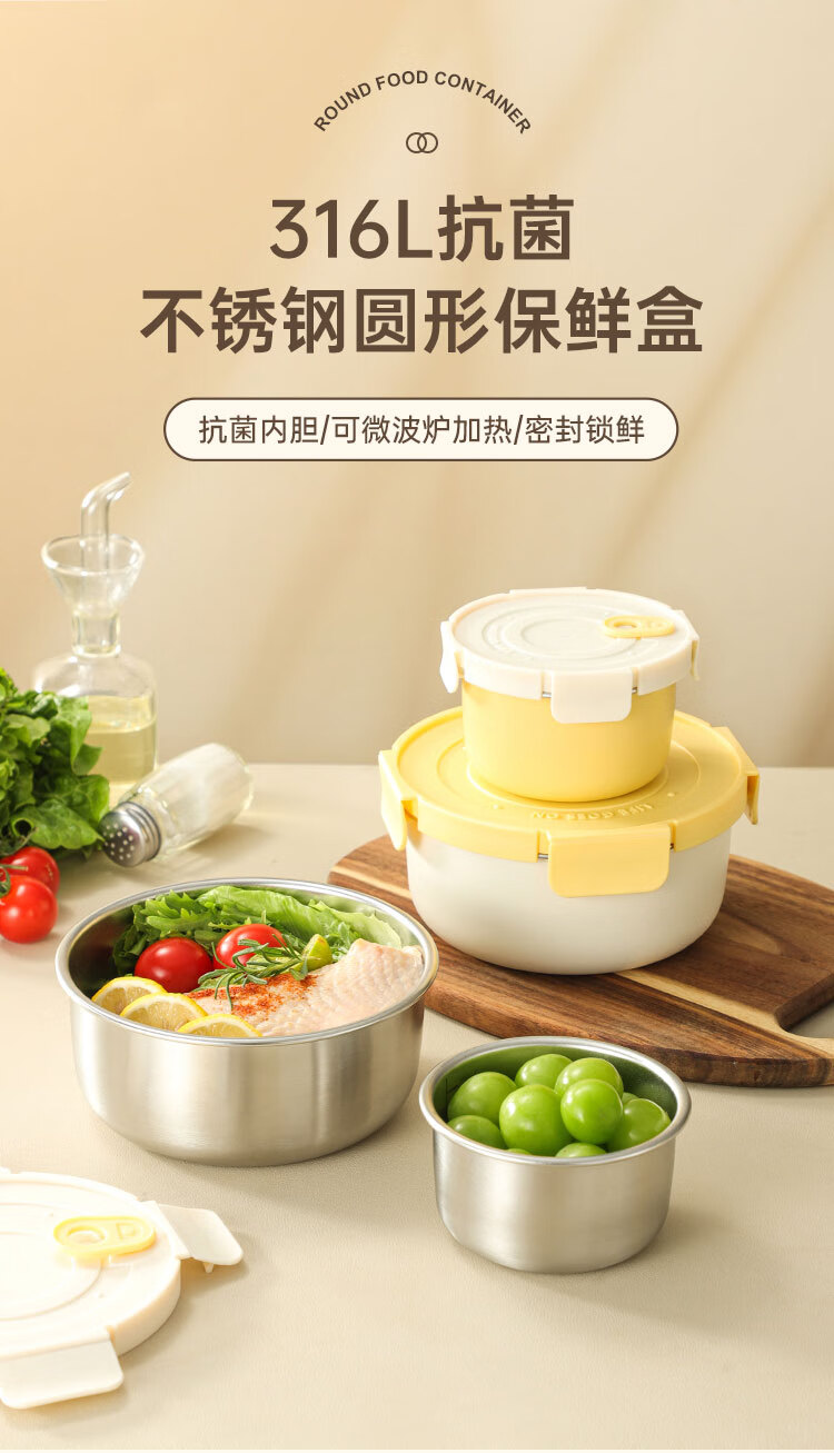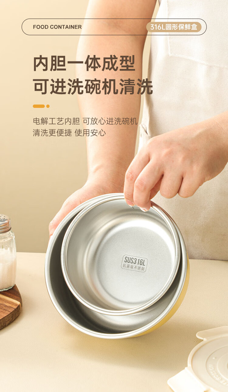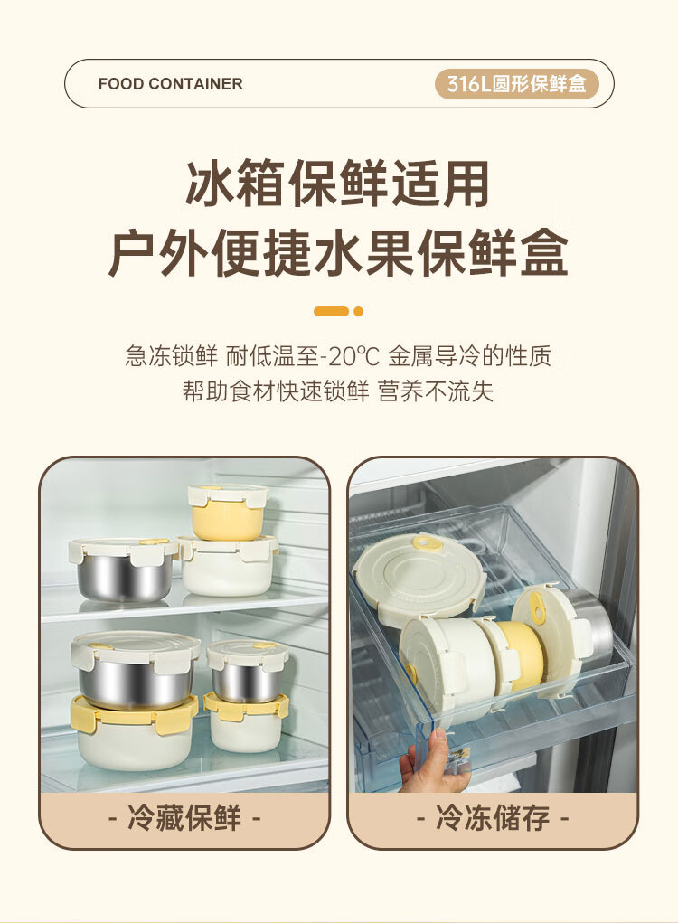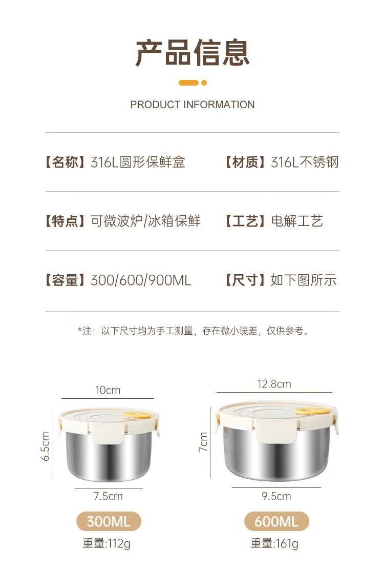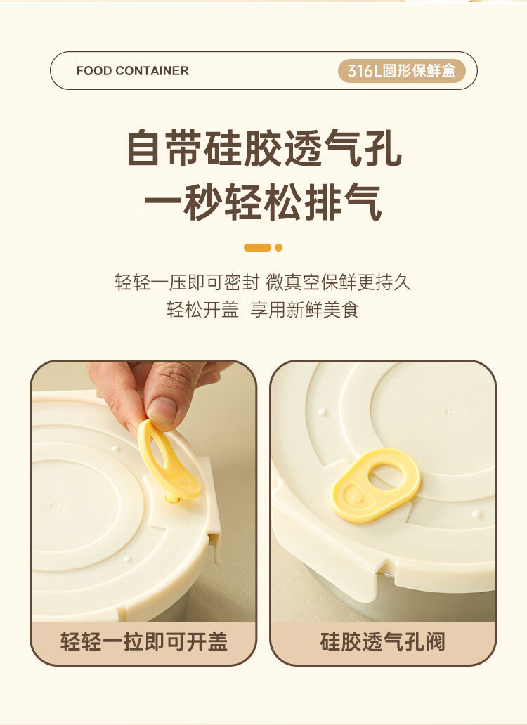 商品名称:(巨邦佑)BJ+物芯质造OVIV 316L萌趣保鲜盒本色 (米白盖) 带刻度线密封防漏