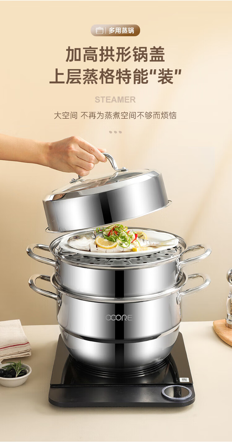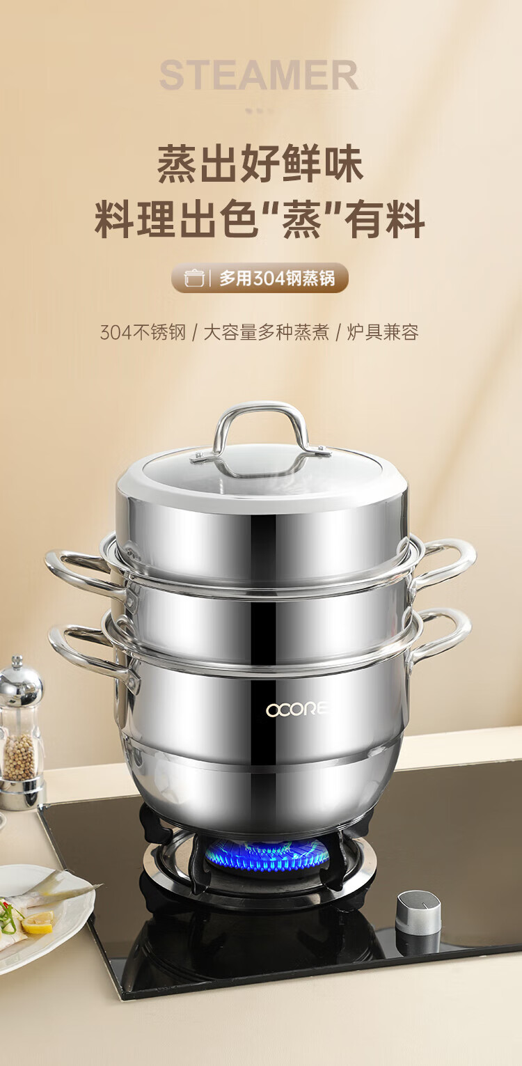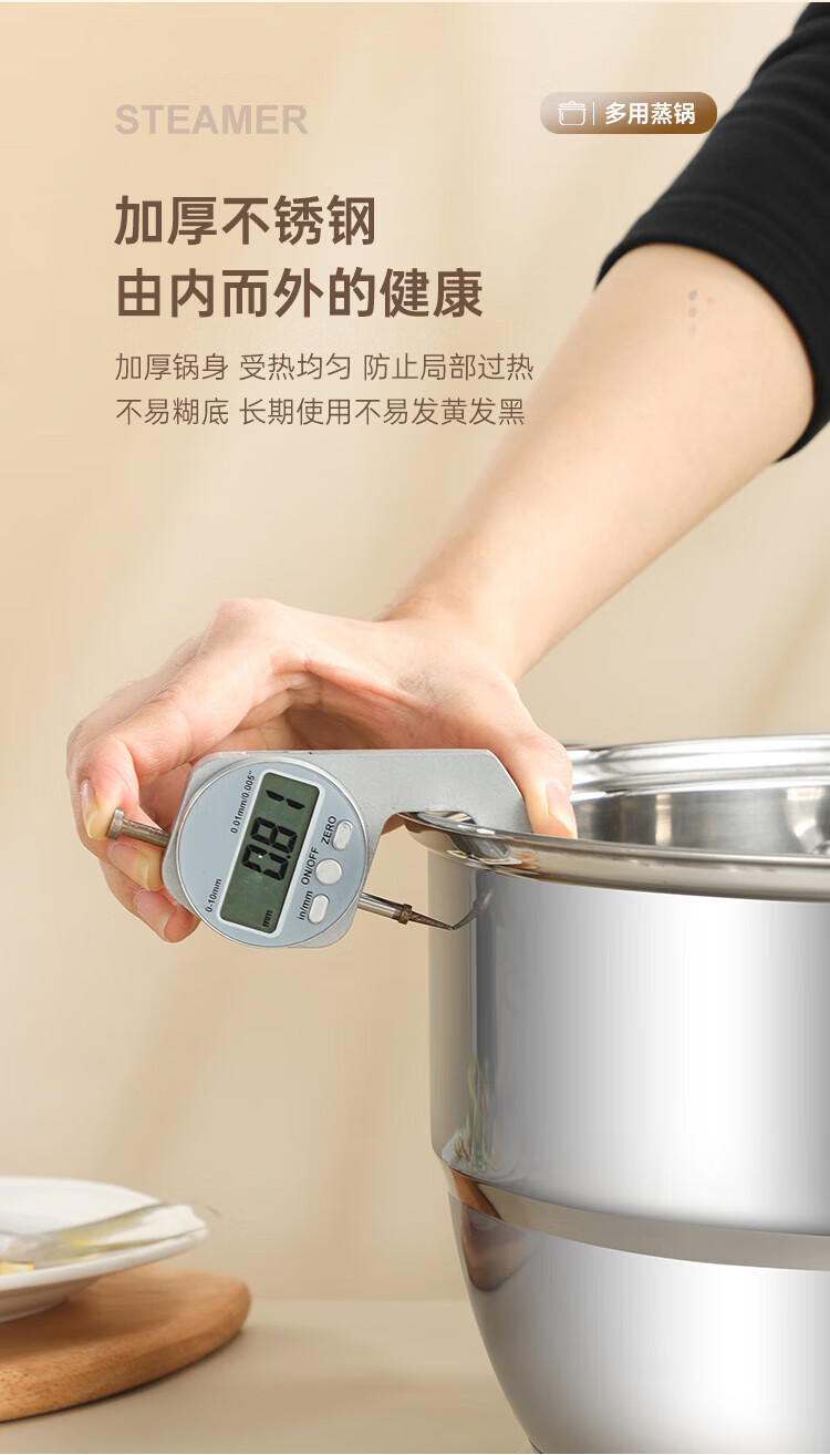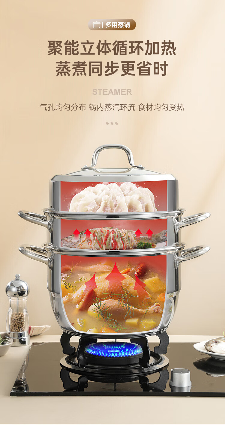 (巨邦佑)BJ+物芯质造米利MIVI不锈钢匠味三层蒸锅 304食品级炉具通用
