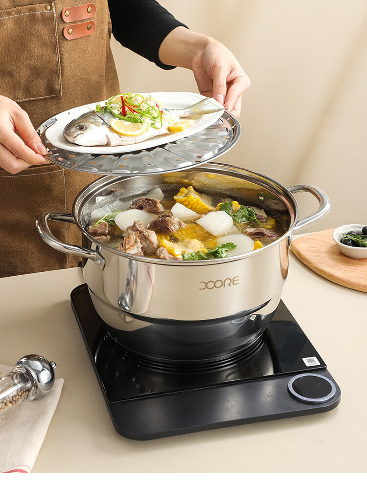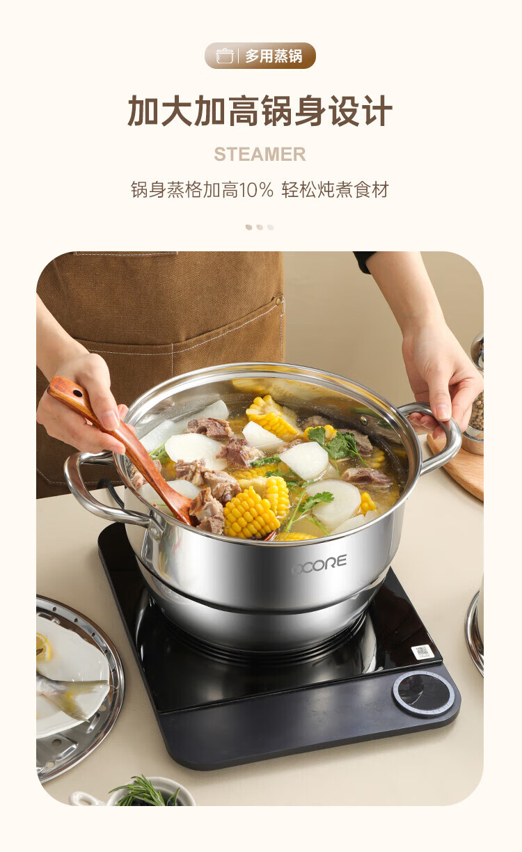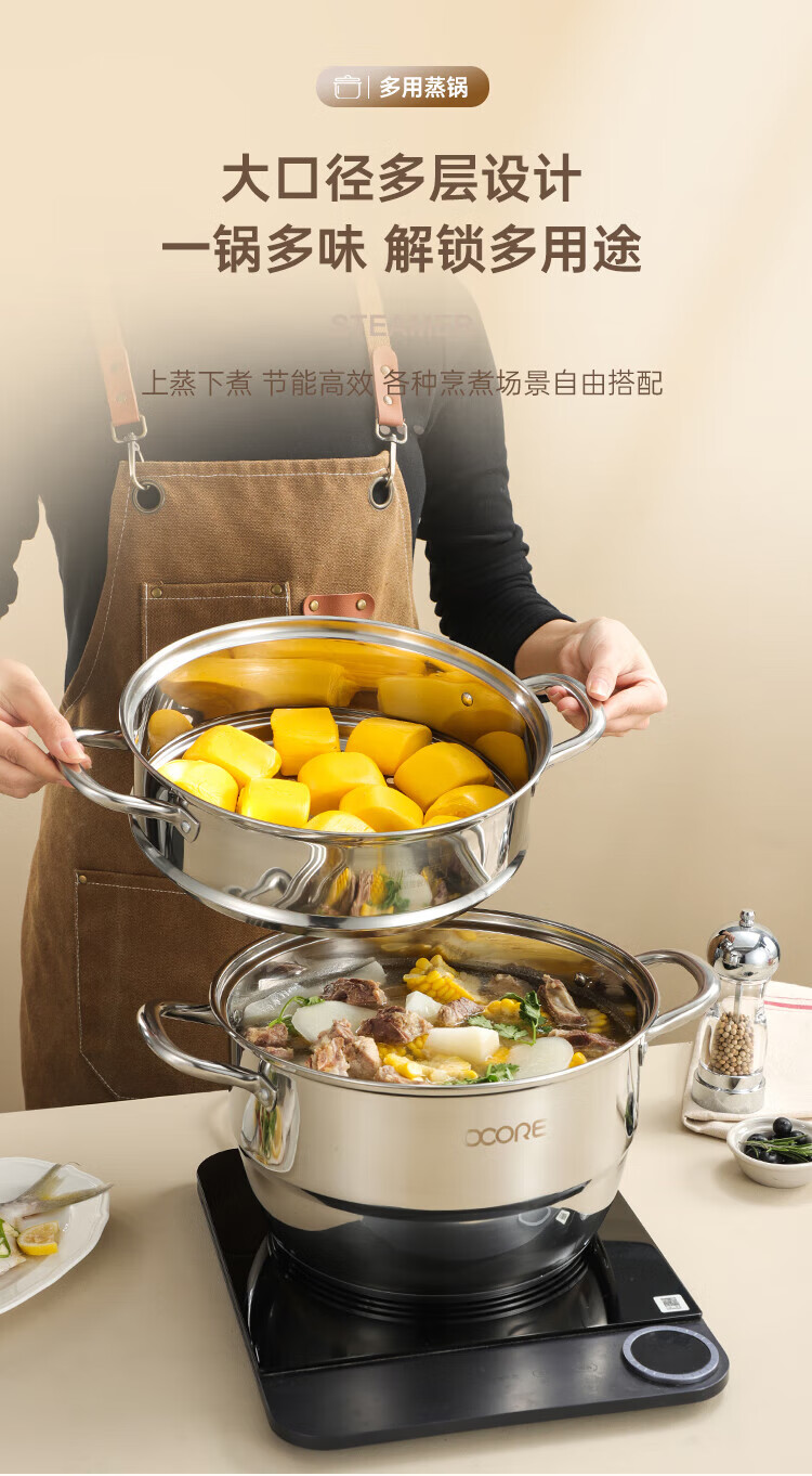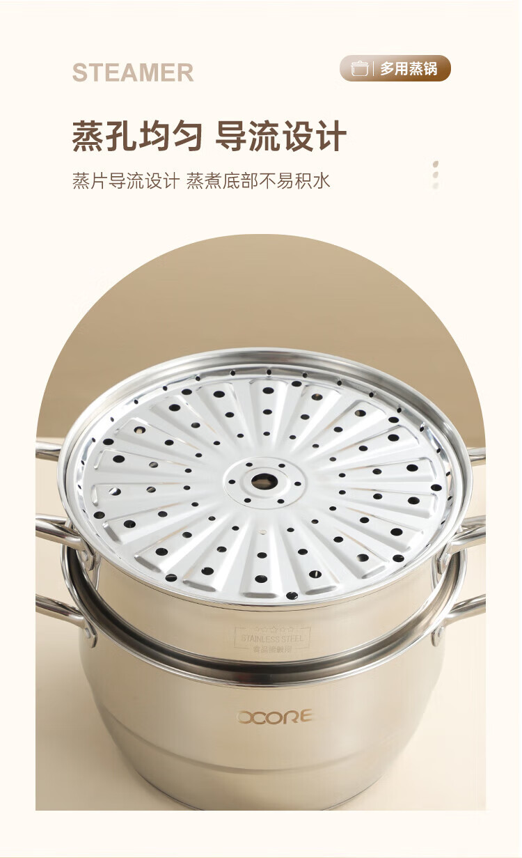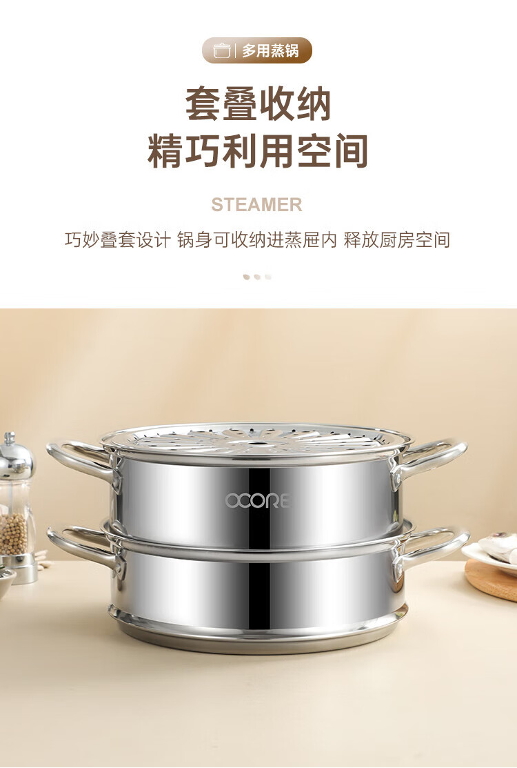 (巨邦佑)BJ+物芯质造米利MIVI不锈钢匠味三层蒸锅 304食品级炉具通用