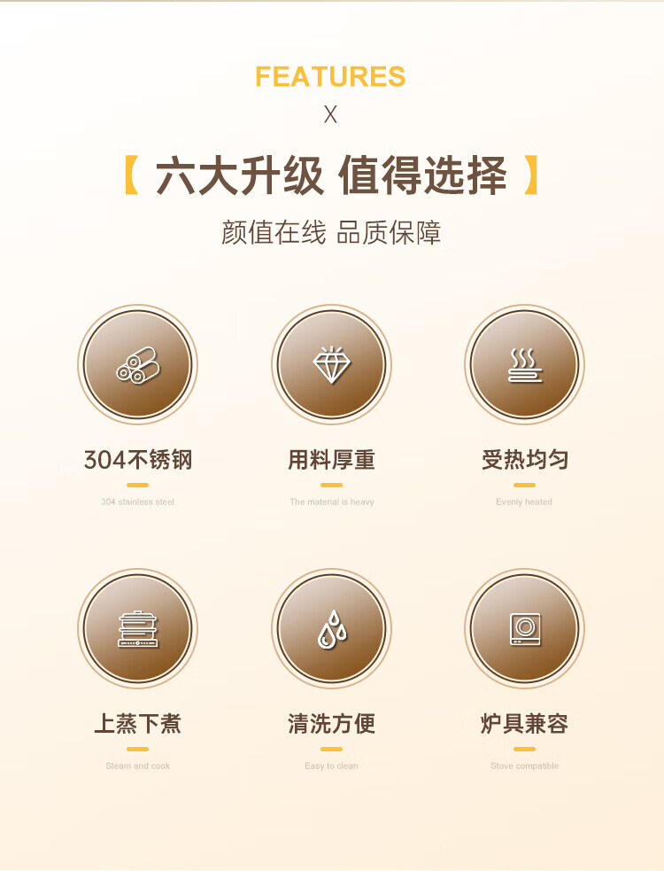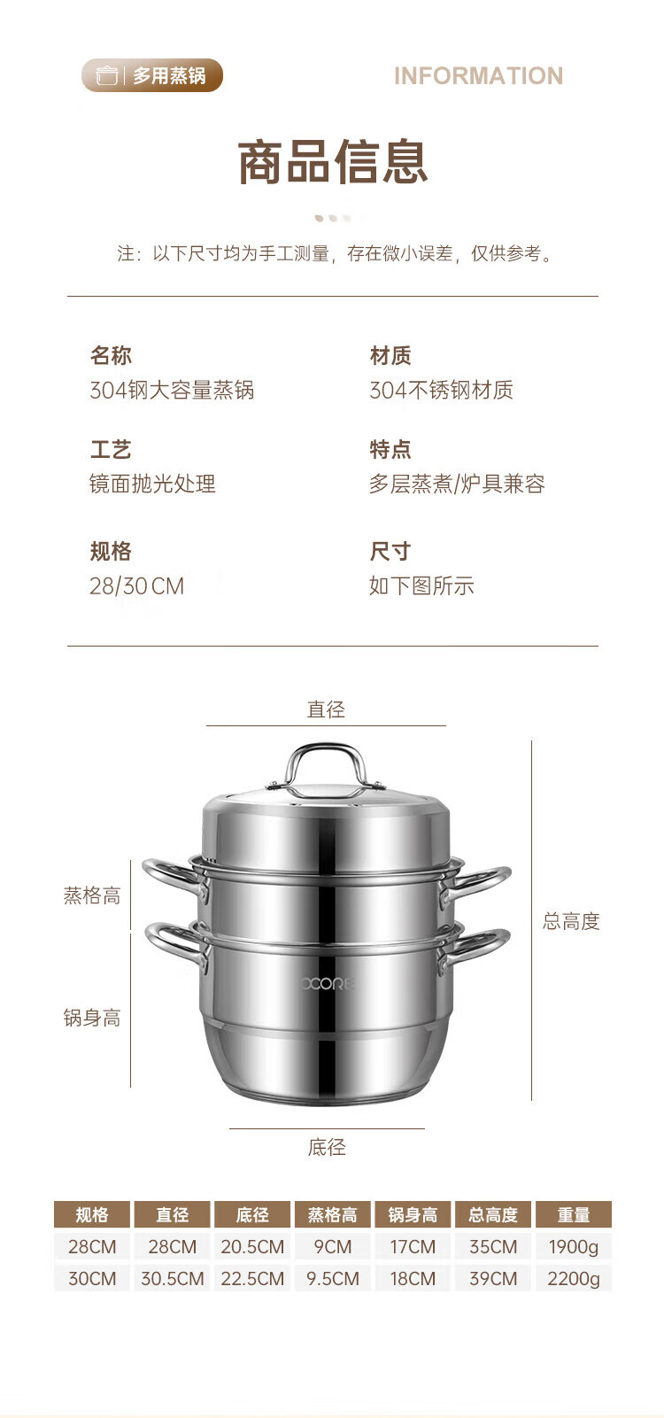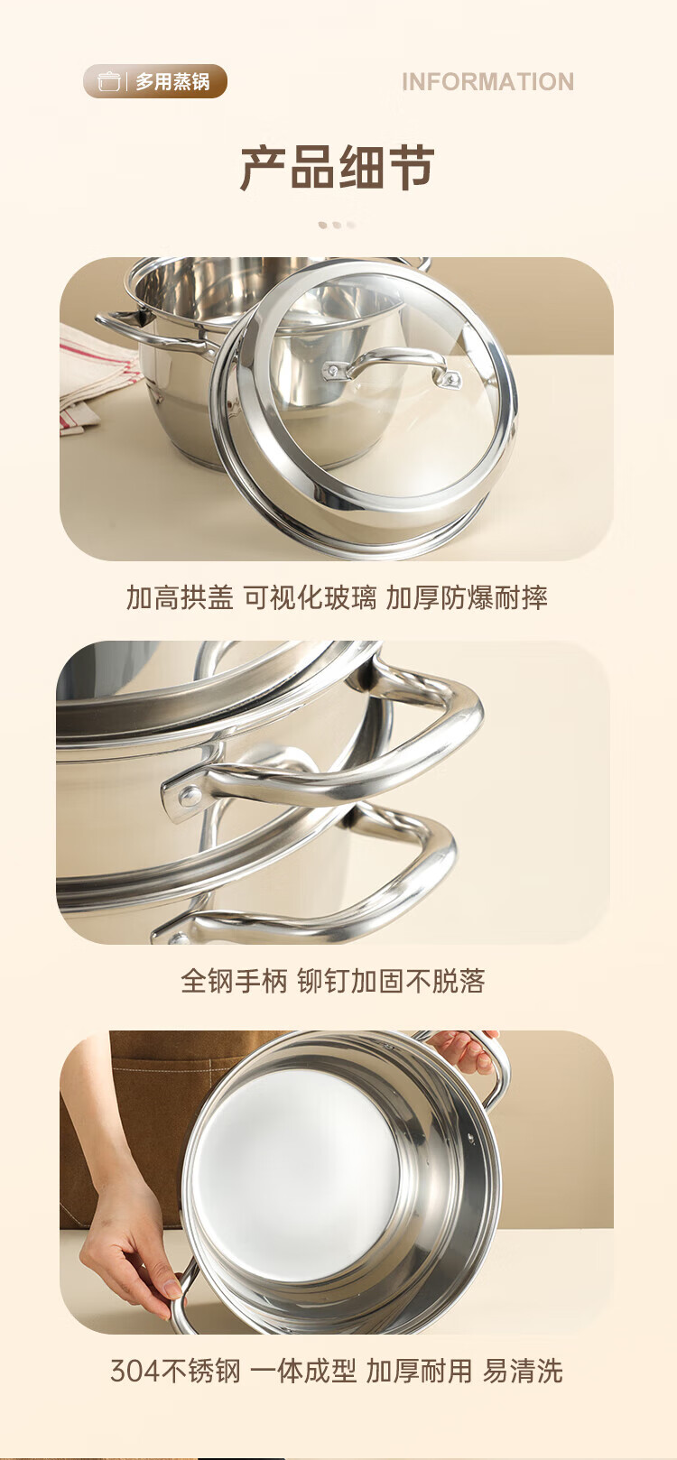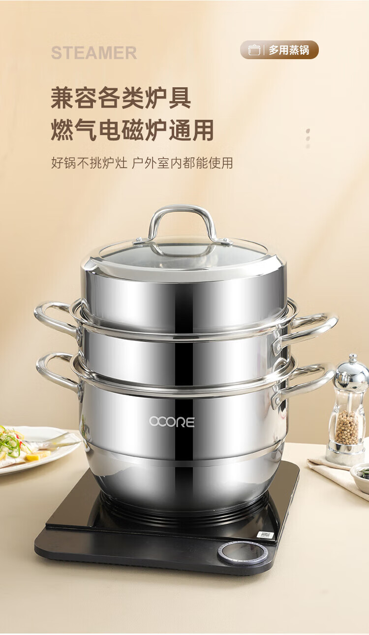商品名称:(巨邦佑)BJ+物芯质造米利MIVI不锈钢匠味三层蒸锅 304食品级炉具通用