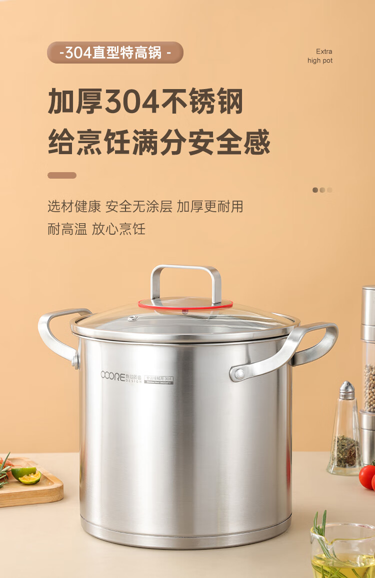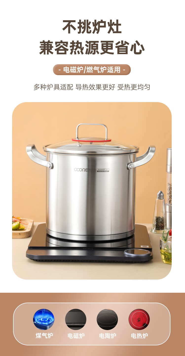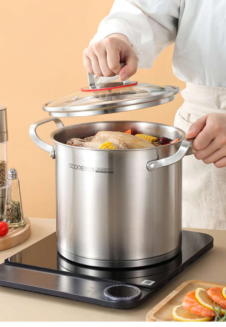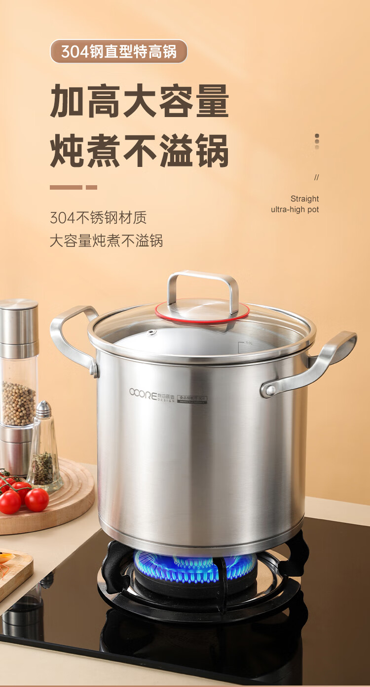 (巨邦佑)BJ+物芯质造奥林OVIV直身特高炖汤锅28cm 6L一锅多用炉具通用