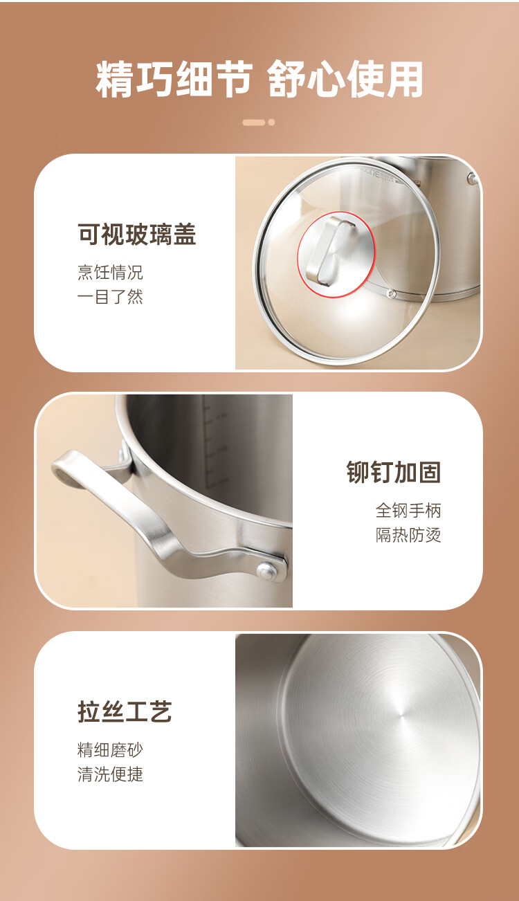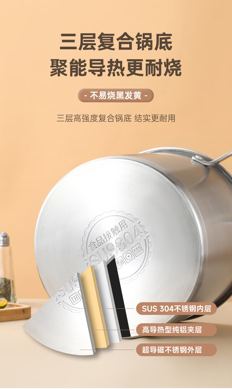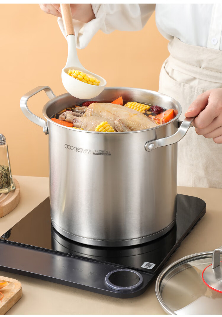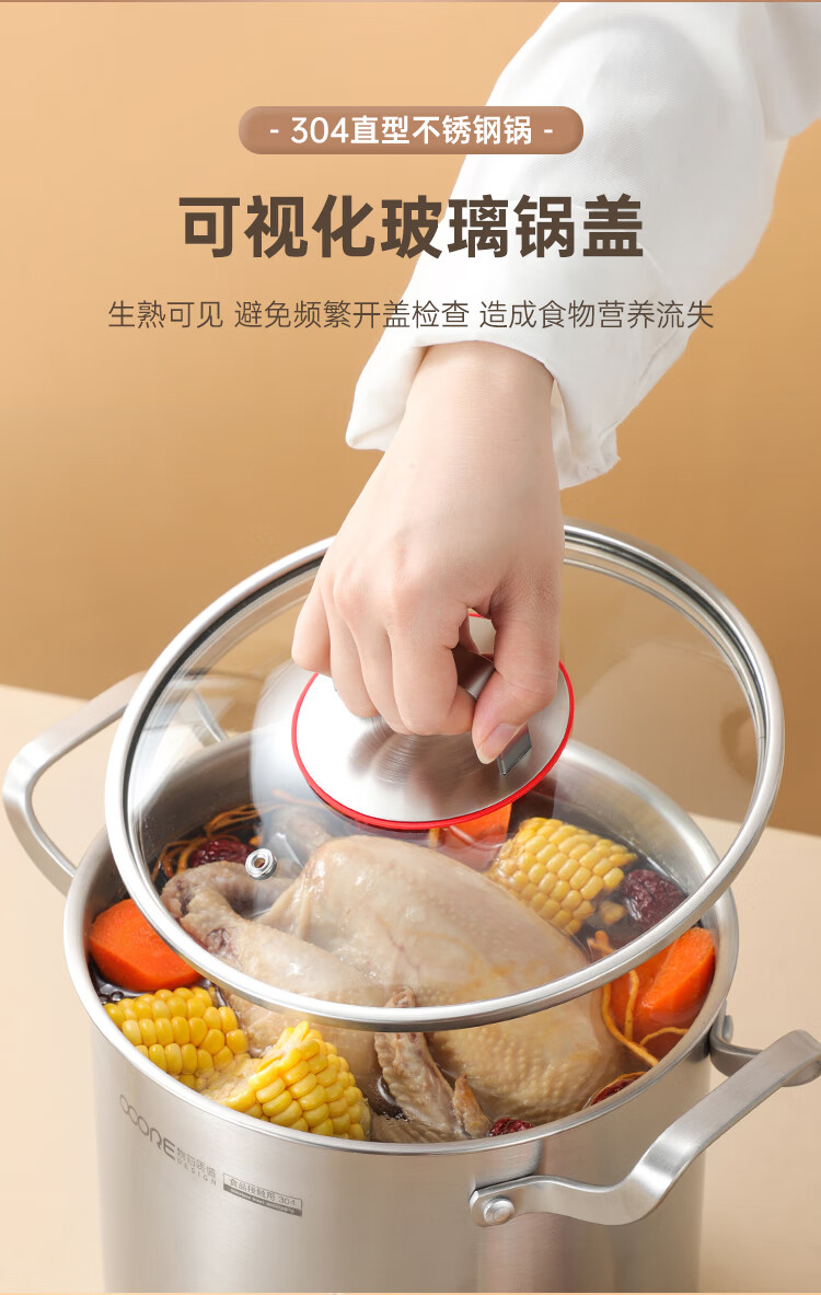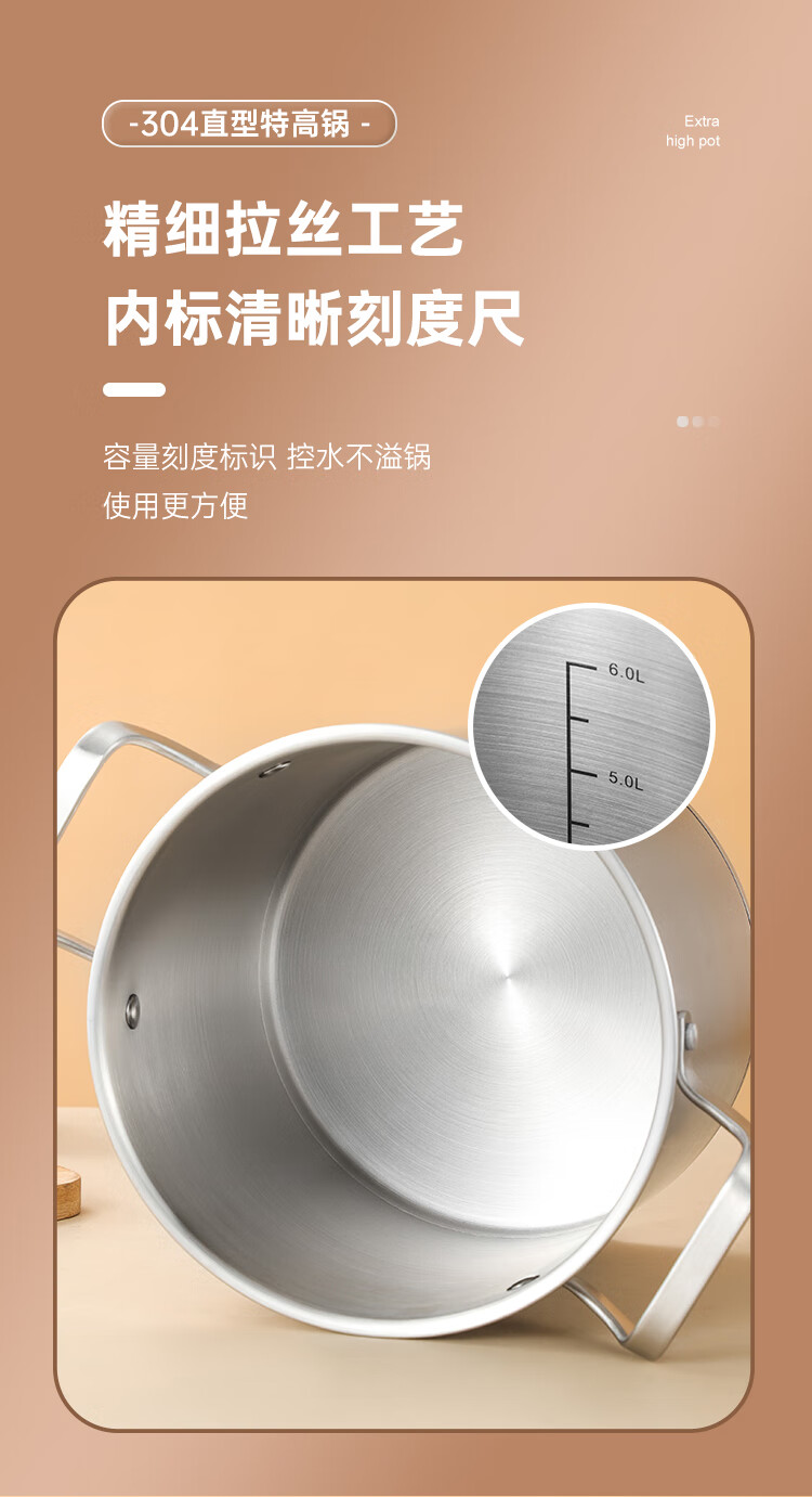 (巨邦佑)BJ+物芯质造奥林OVIV直身特高炖汤锅28cm 6L一锅多用炉具通用