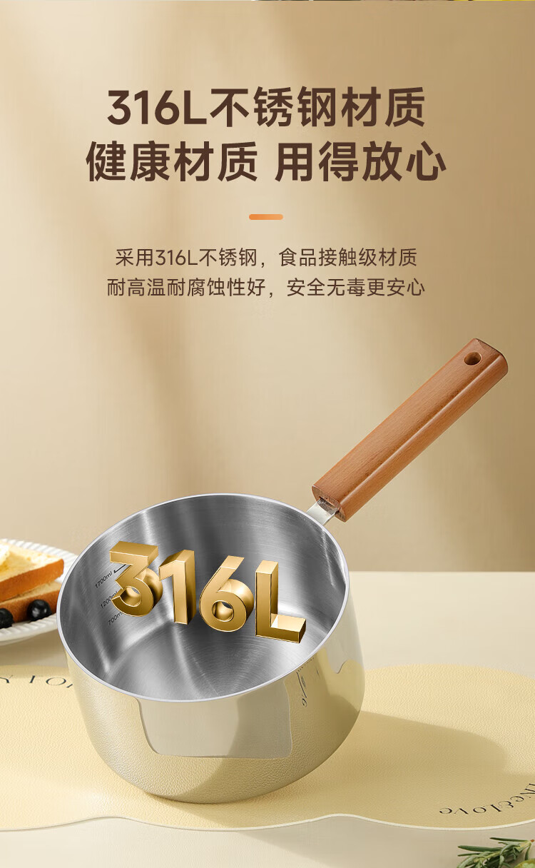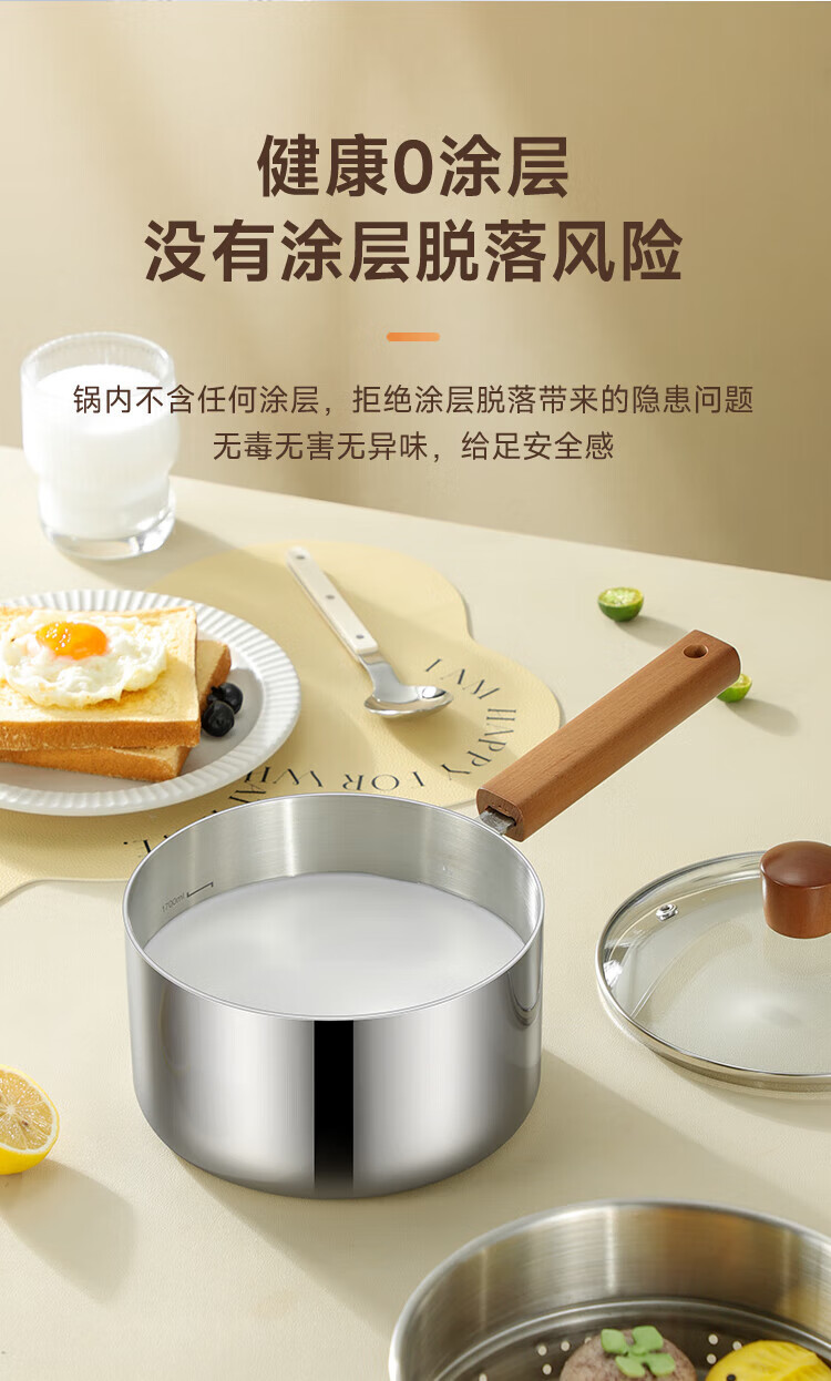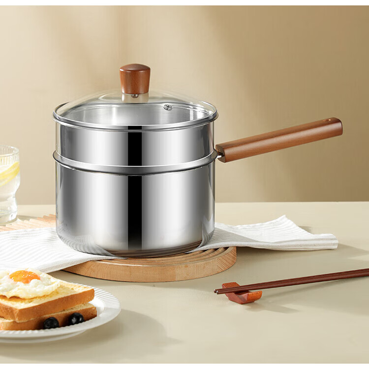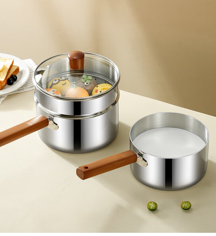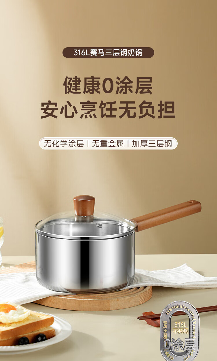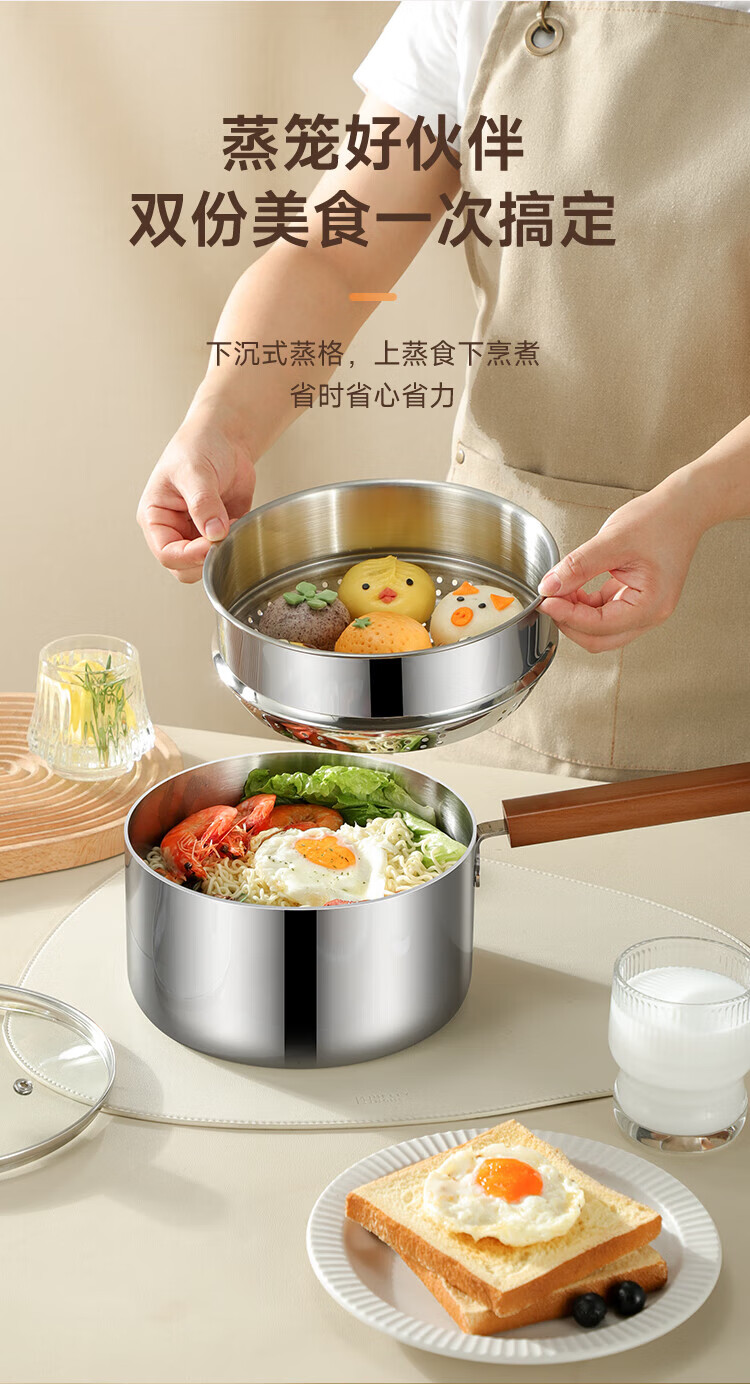 (巨邦佑)BJ+物芯质造赛马Smart 316L多层钢奶锅 带蒸格防烫手柄不锈钢小汤锅易清洗