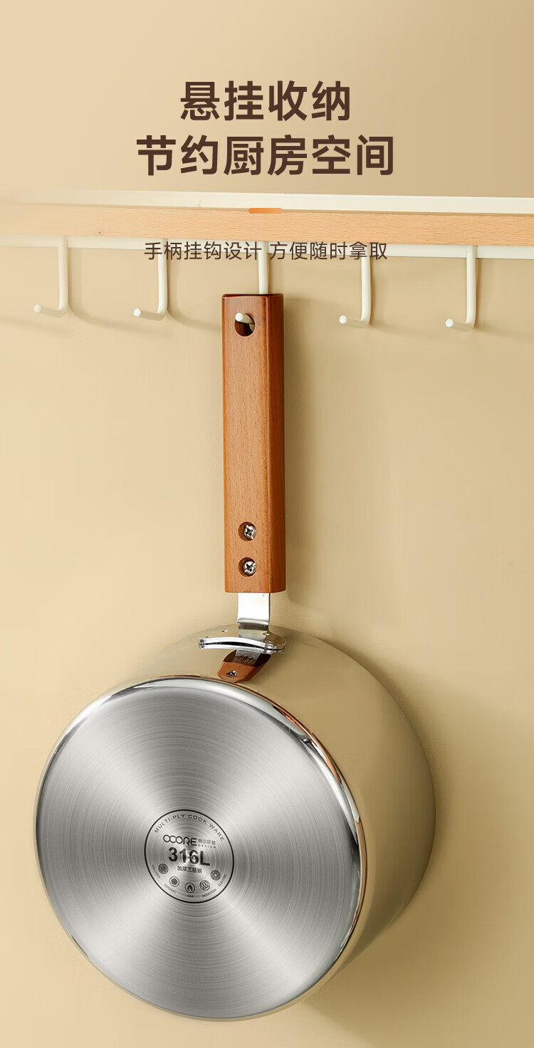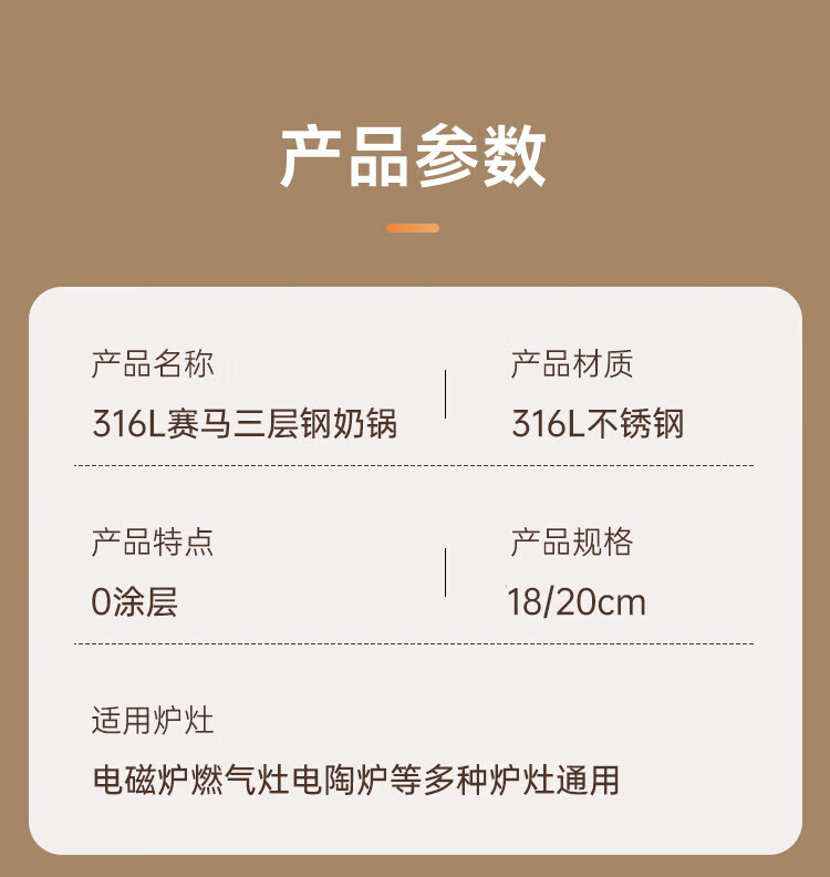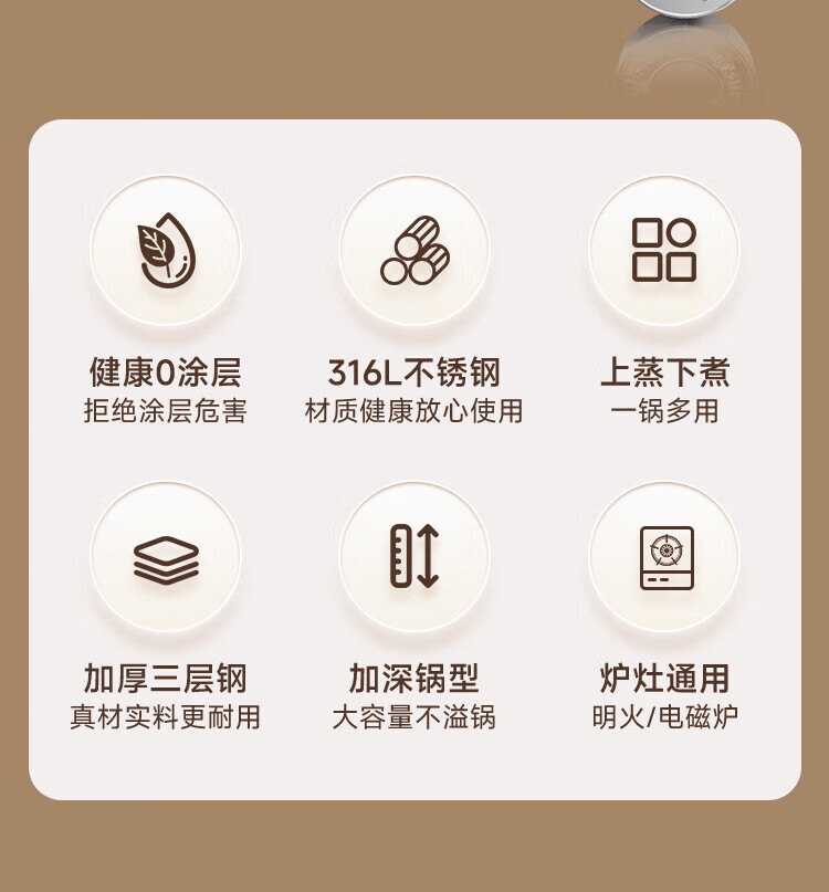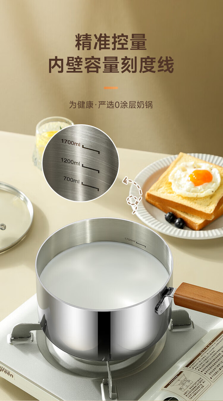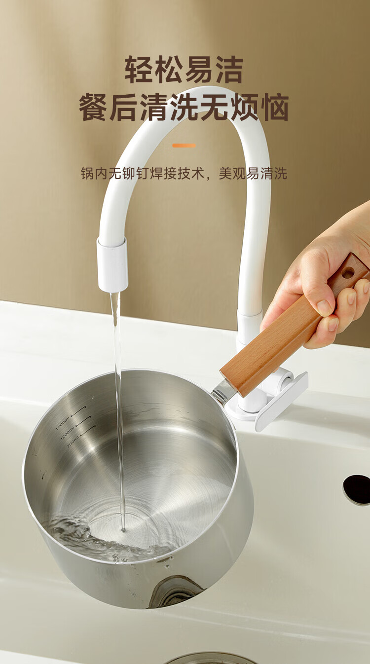 (巨邦佑)BJ+物芯质造赛马Smart 316L多层钢奶锅 带蒸格防烫手柄不锈钢小汤锅易清洗