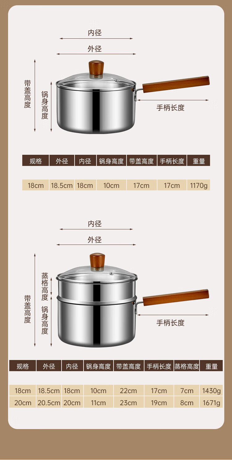商品名称:(巨邦佑)BJ+物芯质造赛马Smart 316L多层钢奶锅 带蒸格防烫手柄不锈钢小汤锅易清洗