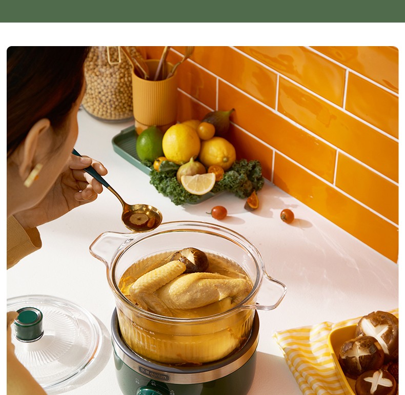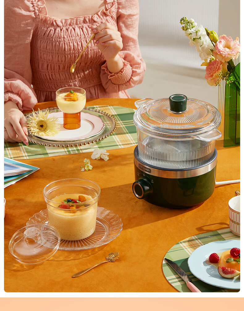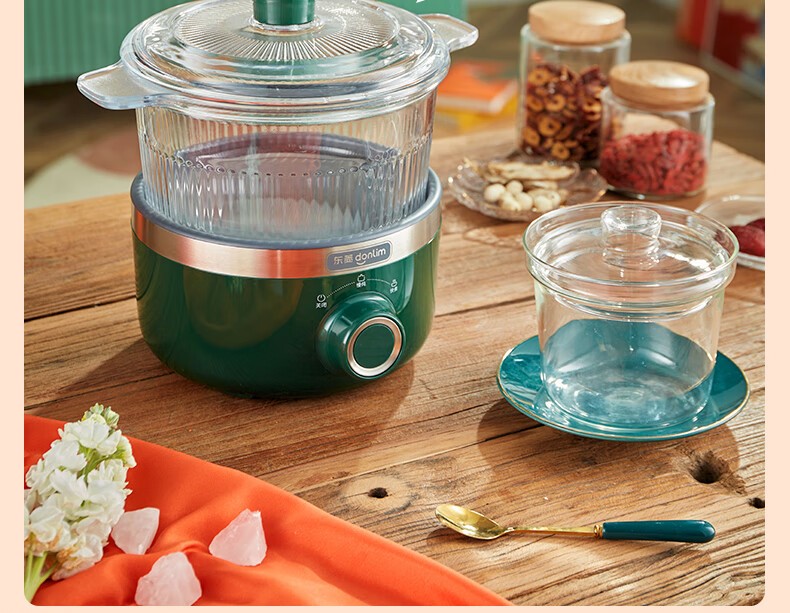 (巨邦佑)BJ+东菱(Donlim)炖煮锅DL-9002 森野绿 电炖锅煲汤燕窝隔水炖盅养生隔水炖锅BB煲汤小锅玻璃电炖锅食补养颜
