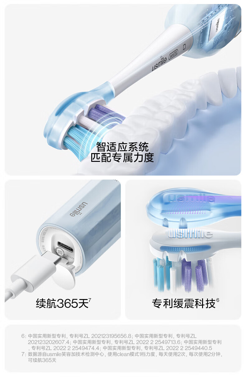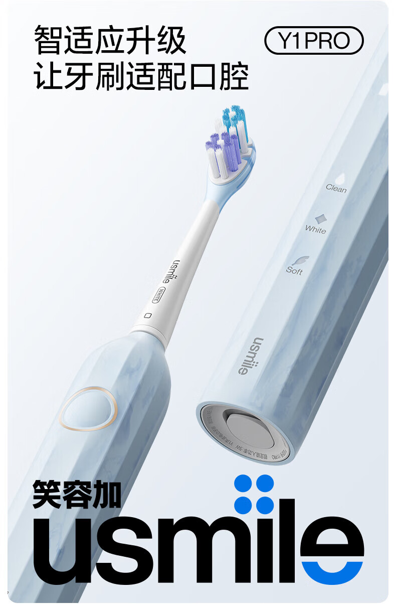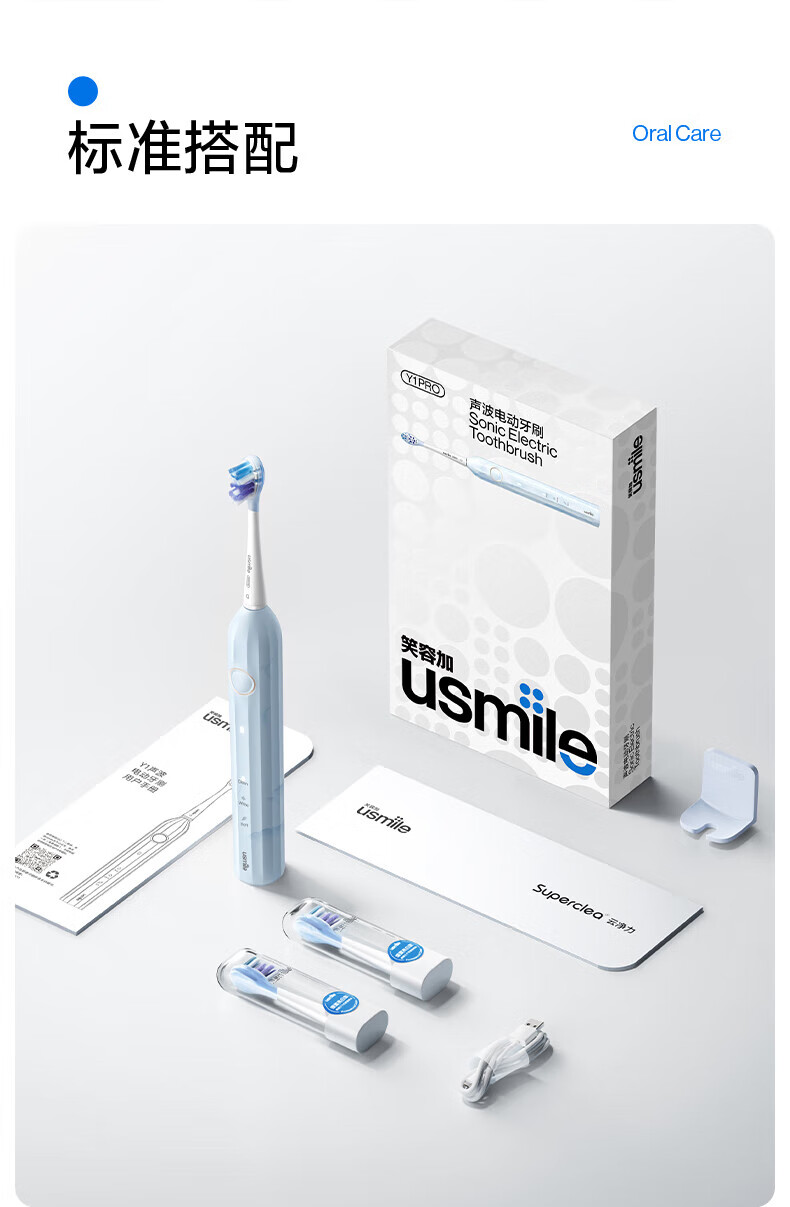 商品名称:(超运·禾贸)usmile笑容加电动牙刷(成人) Y1MAX 钴蓝 防水强续航 缓震不打牙 深度清洁 成人男女情侣生日实用礼物