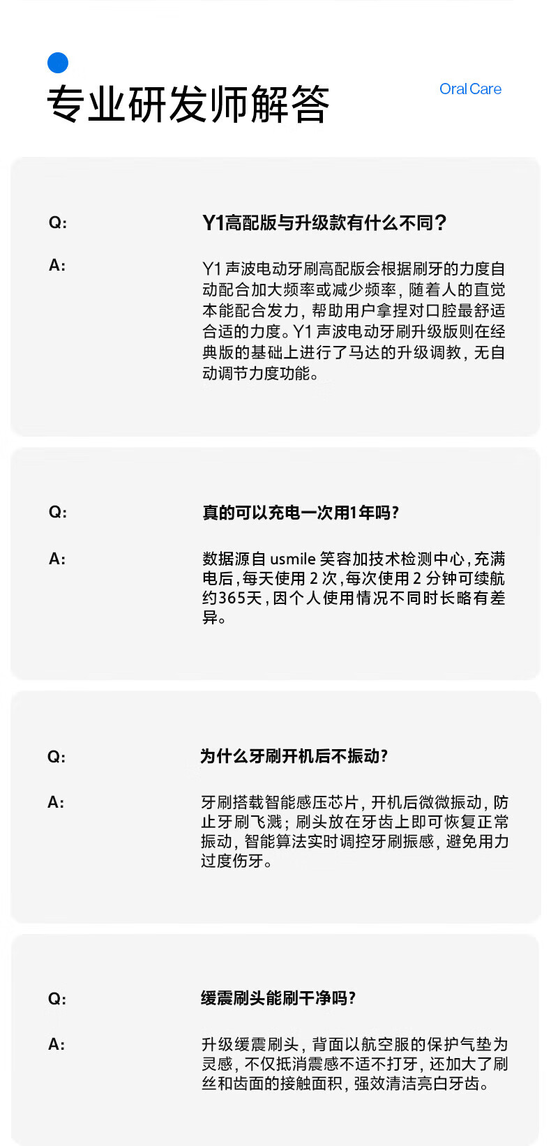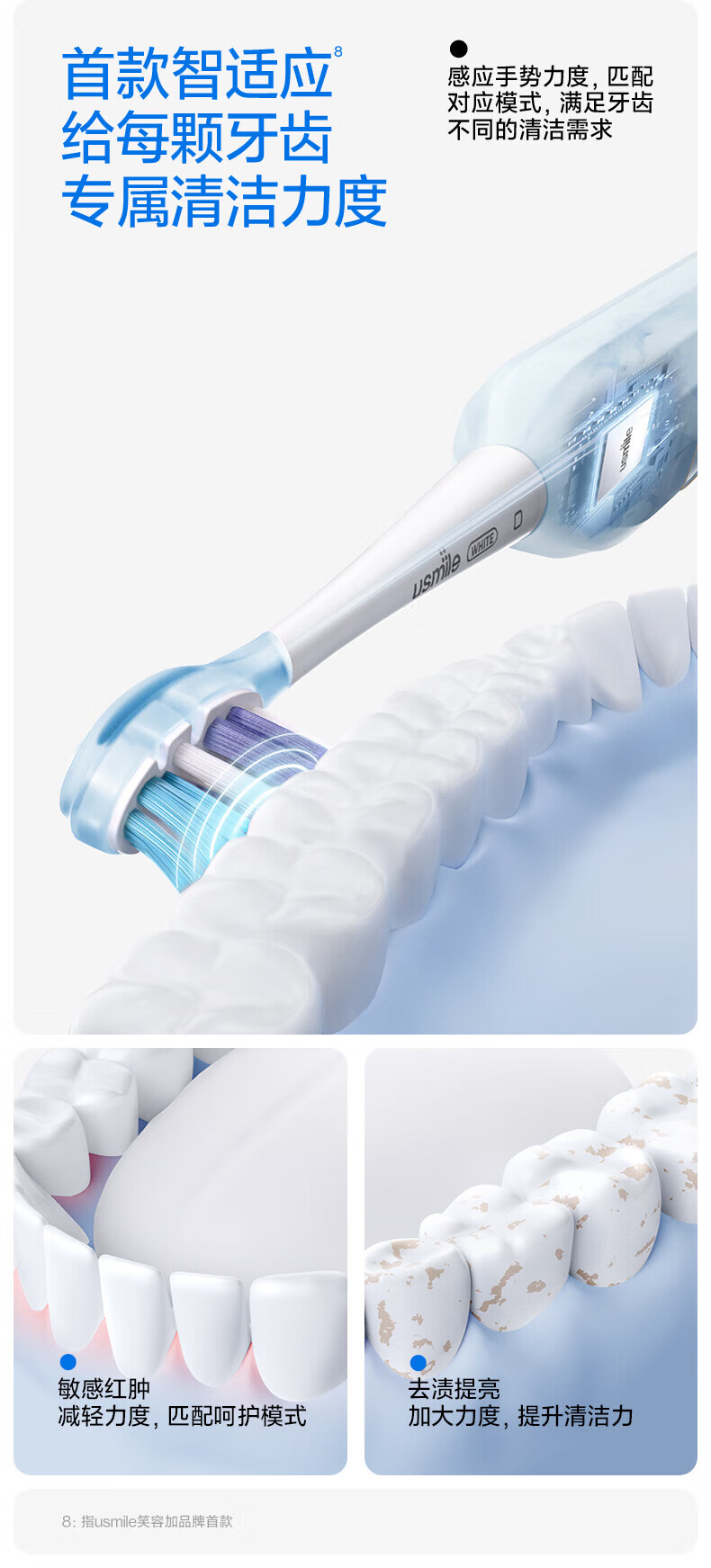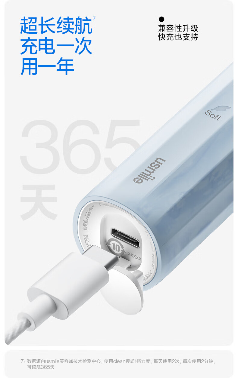 商品名称:(超运·禾贸)usmile笑容加电动牙刷(成人) Y1MAX 钴蓝 防水强续航 缓震不打牙 深度清洁 成人男女情侣生日实用礼物