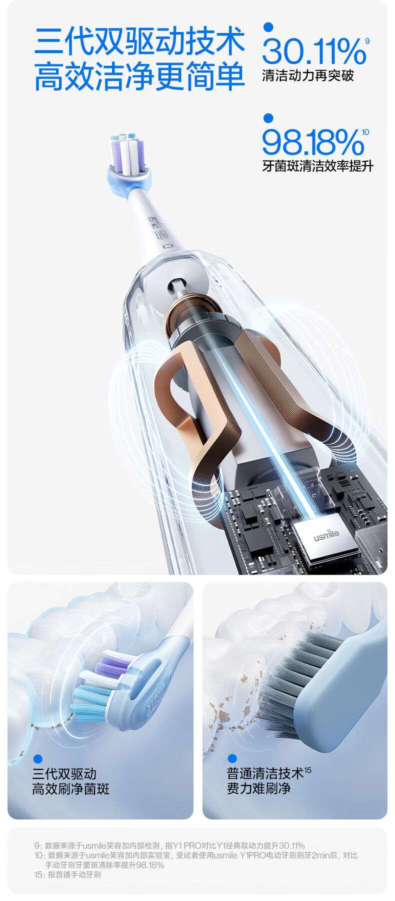 (超运·禾贸)usmile笑容加电动牙刷(成人) Y1MAX 钴蓝 防水强续航 缓震不打牙 深度清洁 成人男女情侣生日实用礼物