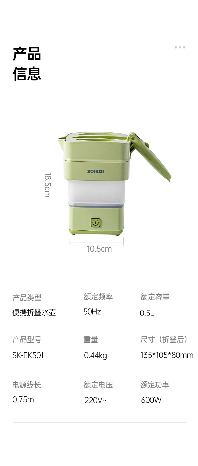 商品名称:(巨邦佑)BJ+SOIKOI司崎库 便携折叠水壶 0.5L SK-EK501S方便轻松携带
