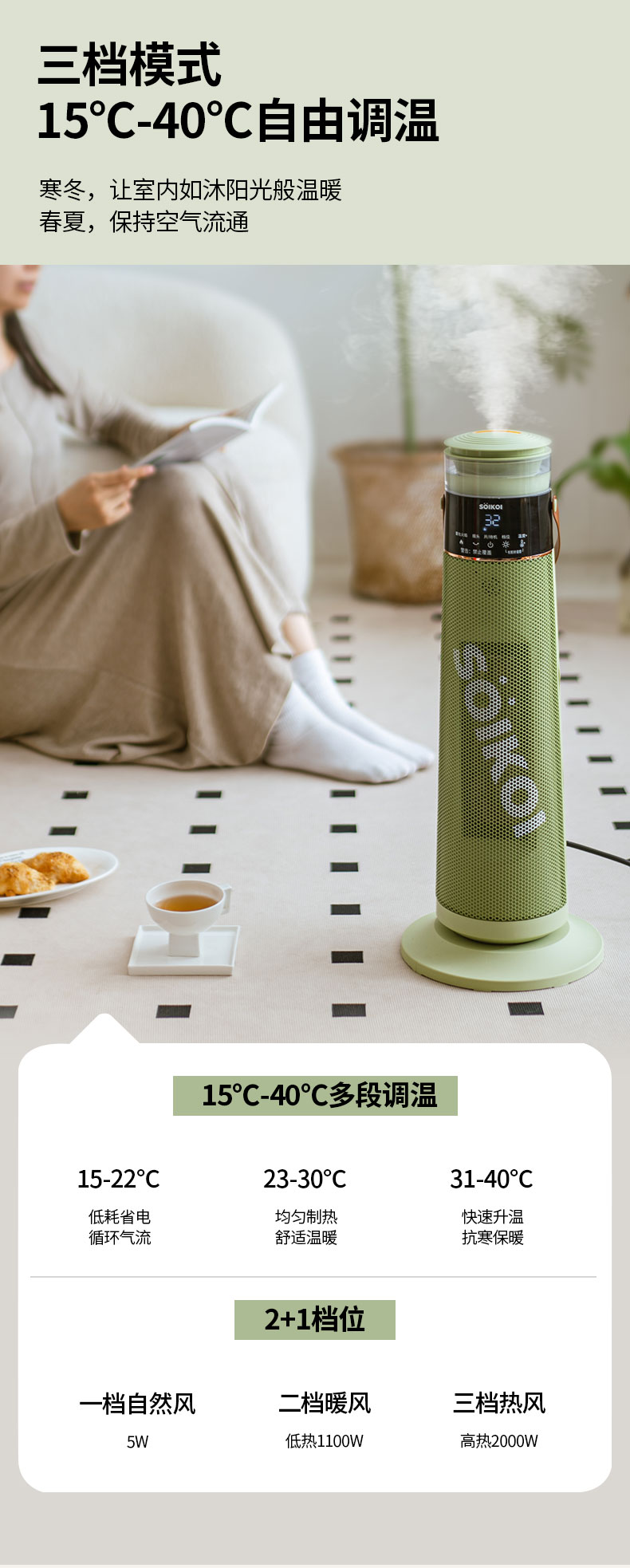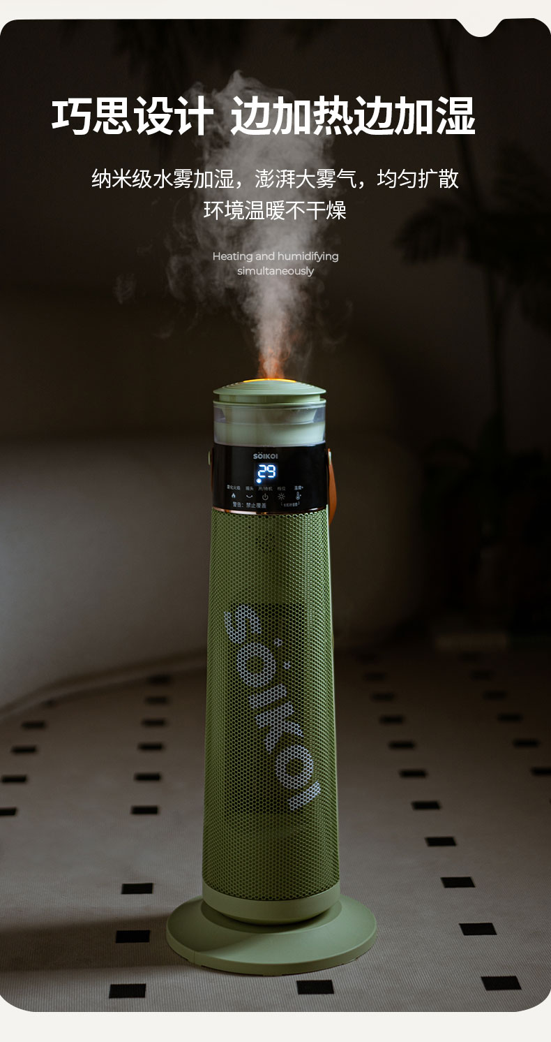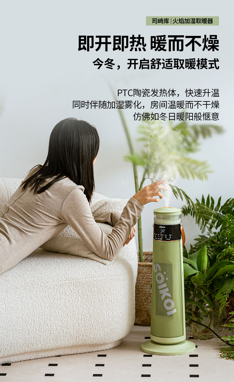 (巨邦佑)BJ+SOIKOI司崎库 火焰加湿取暖器 CQ-20DY1 家用暖风机电暖器办公室桌面立式暖风机