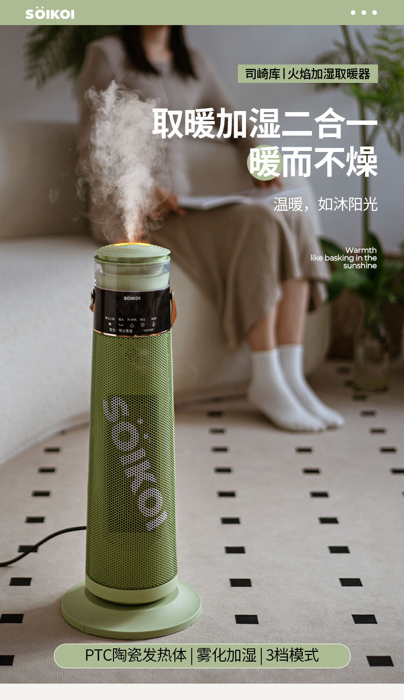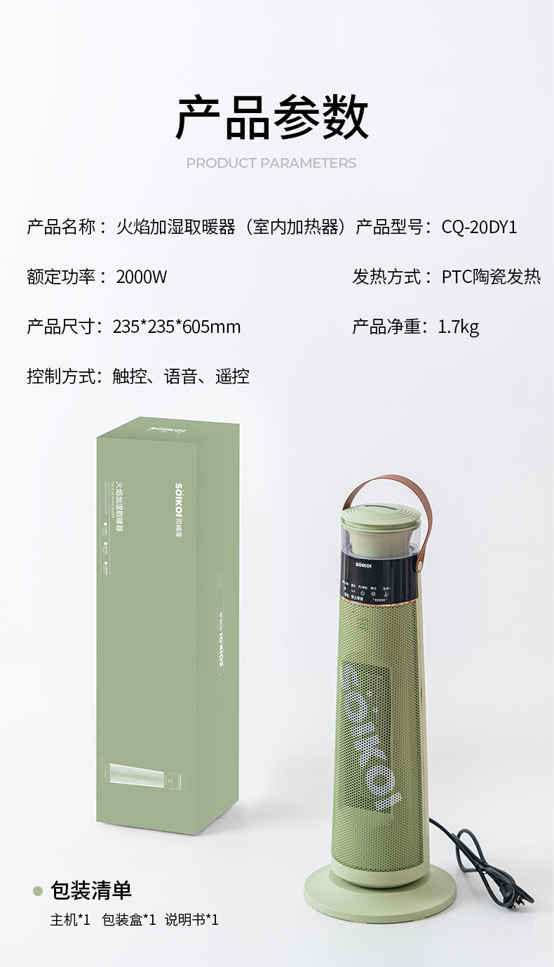 商品名称:(巨邦佑)BJ+SOIKOI司崎库 火焰加湿取暖器 CQ-20DY1 家用暖风机电暖器办公室桌面立式暖风机