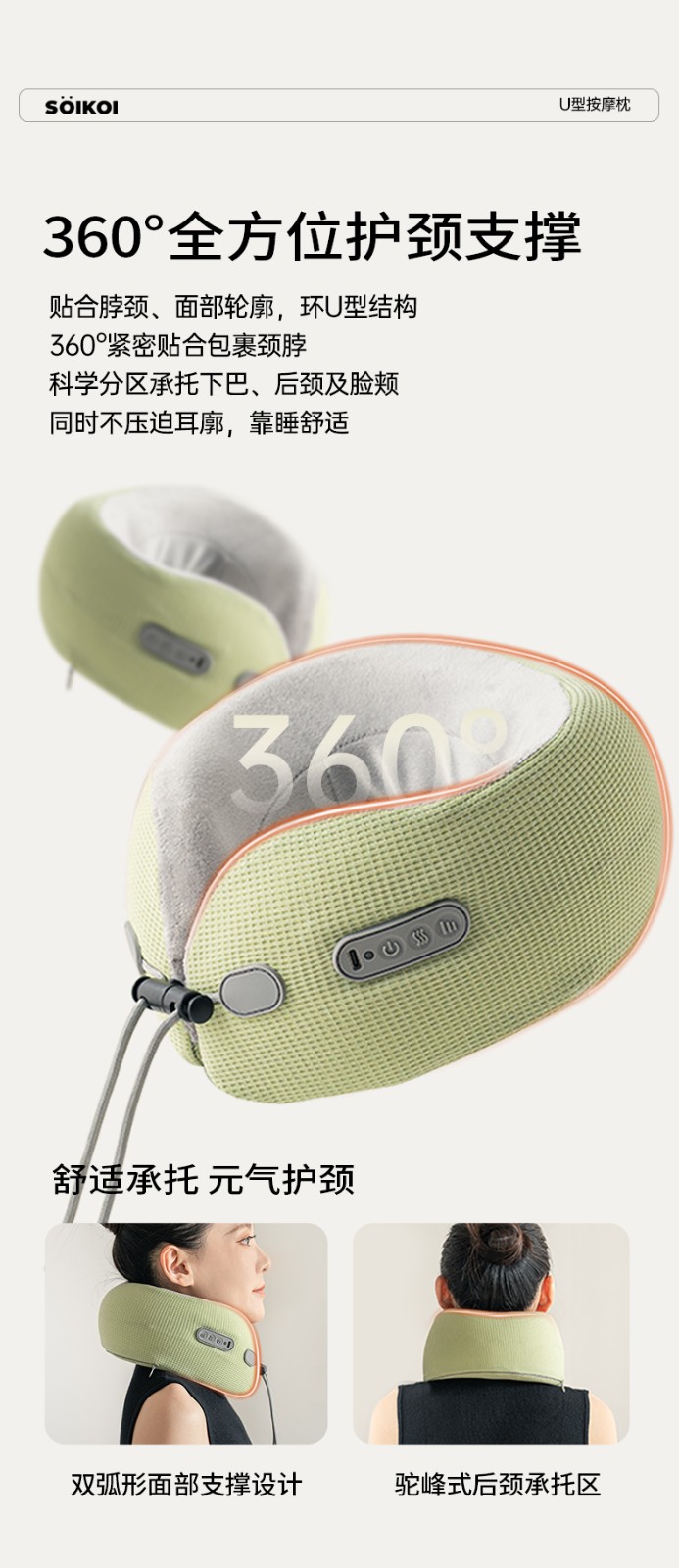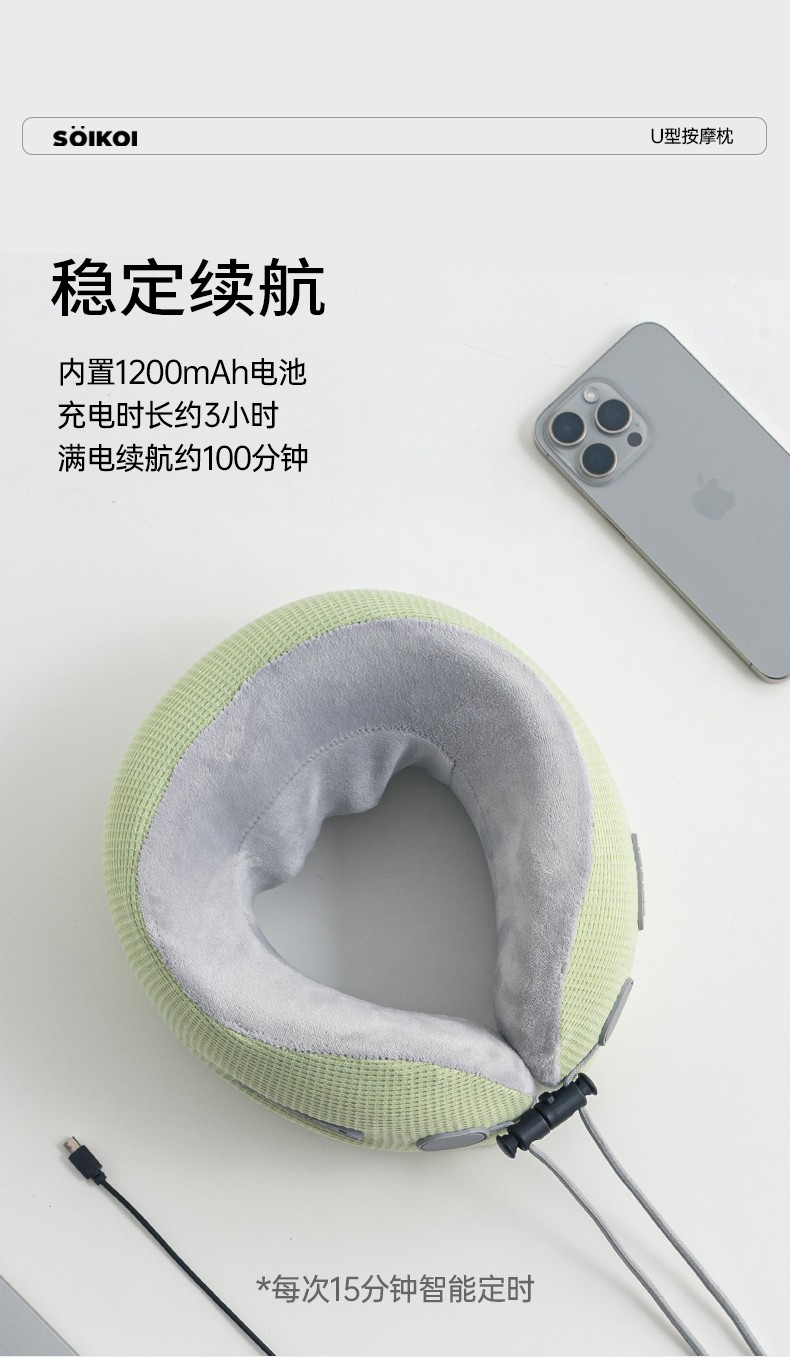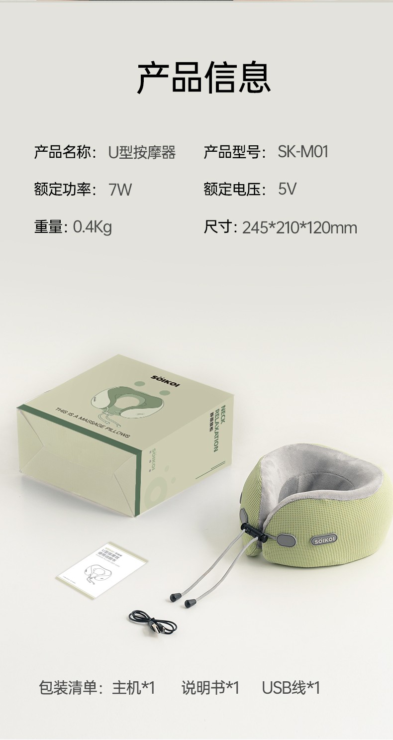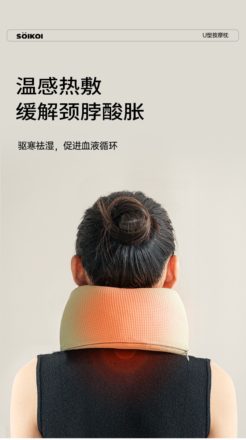 商品名称:(巨邦佑)BJ+SOIKOI司崎库 U型按摩枕 SK-M01 颈部按摩器脖子颈椎仪热敷护颈托
