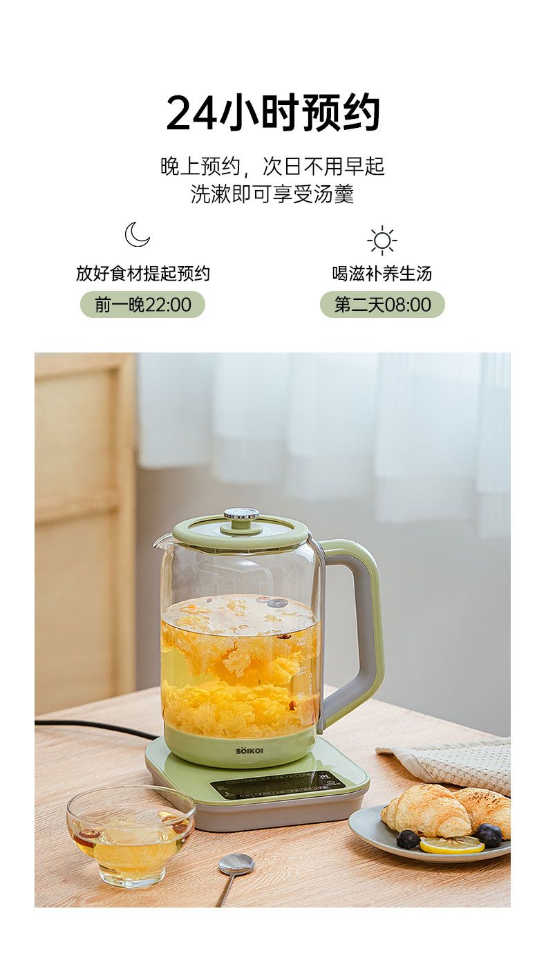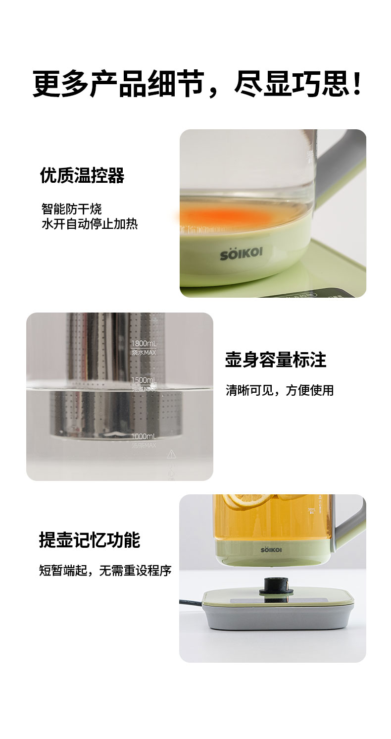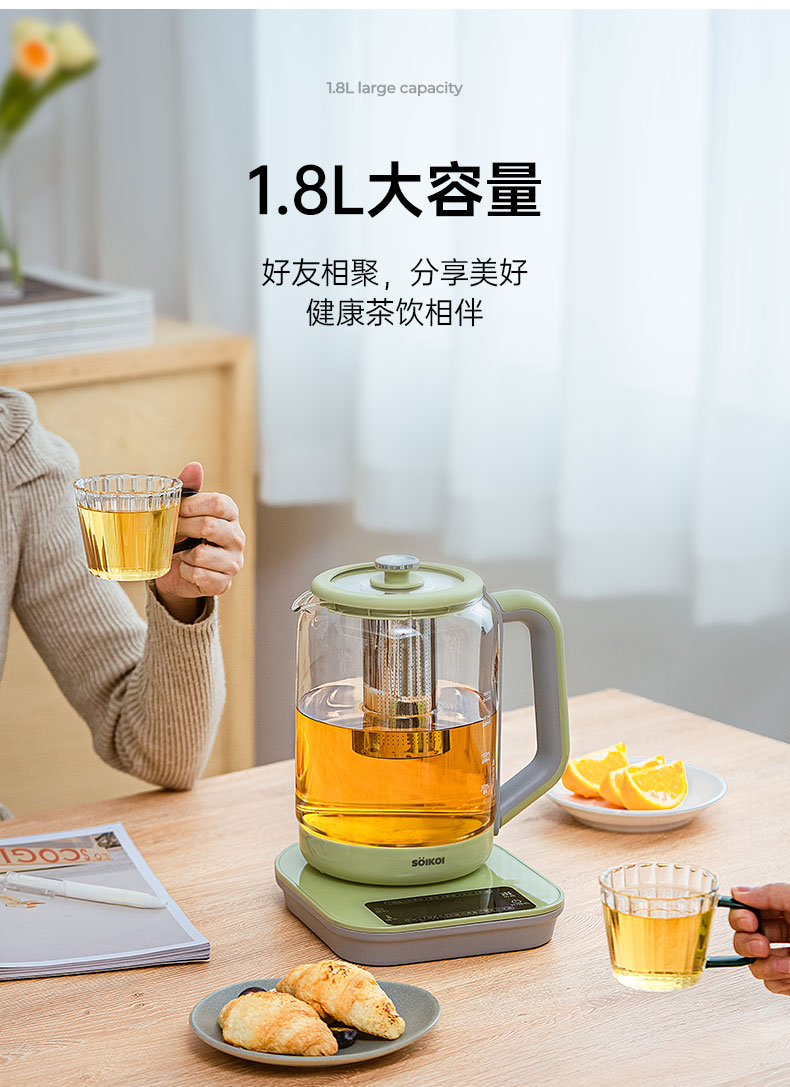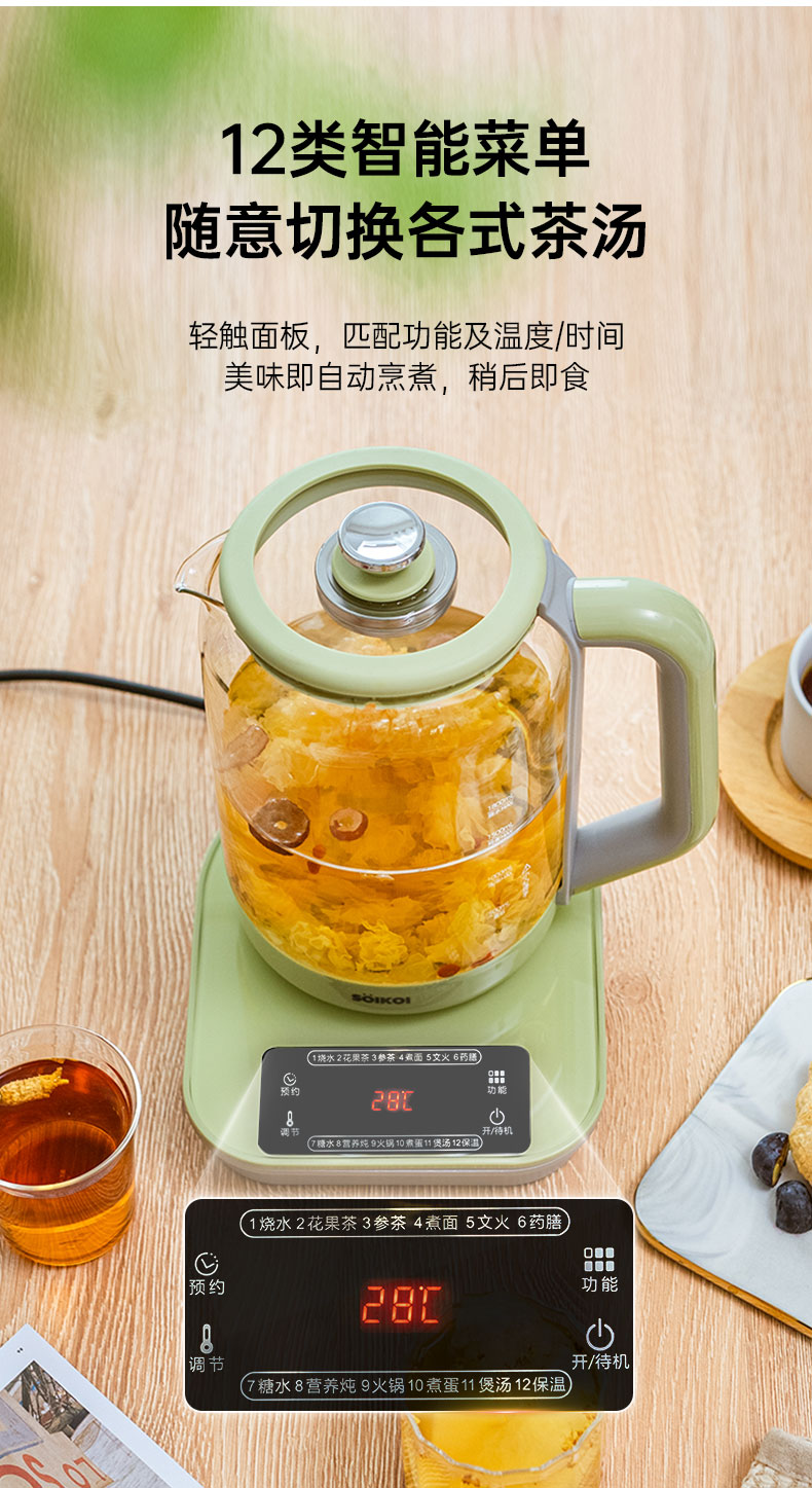 (巨邦佑)BJ+SOIKOI司崎库 多功能养生壶 1.8L CD-C918 全自动加厚高硼硅玻璃茶壶
