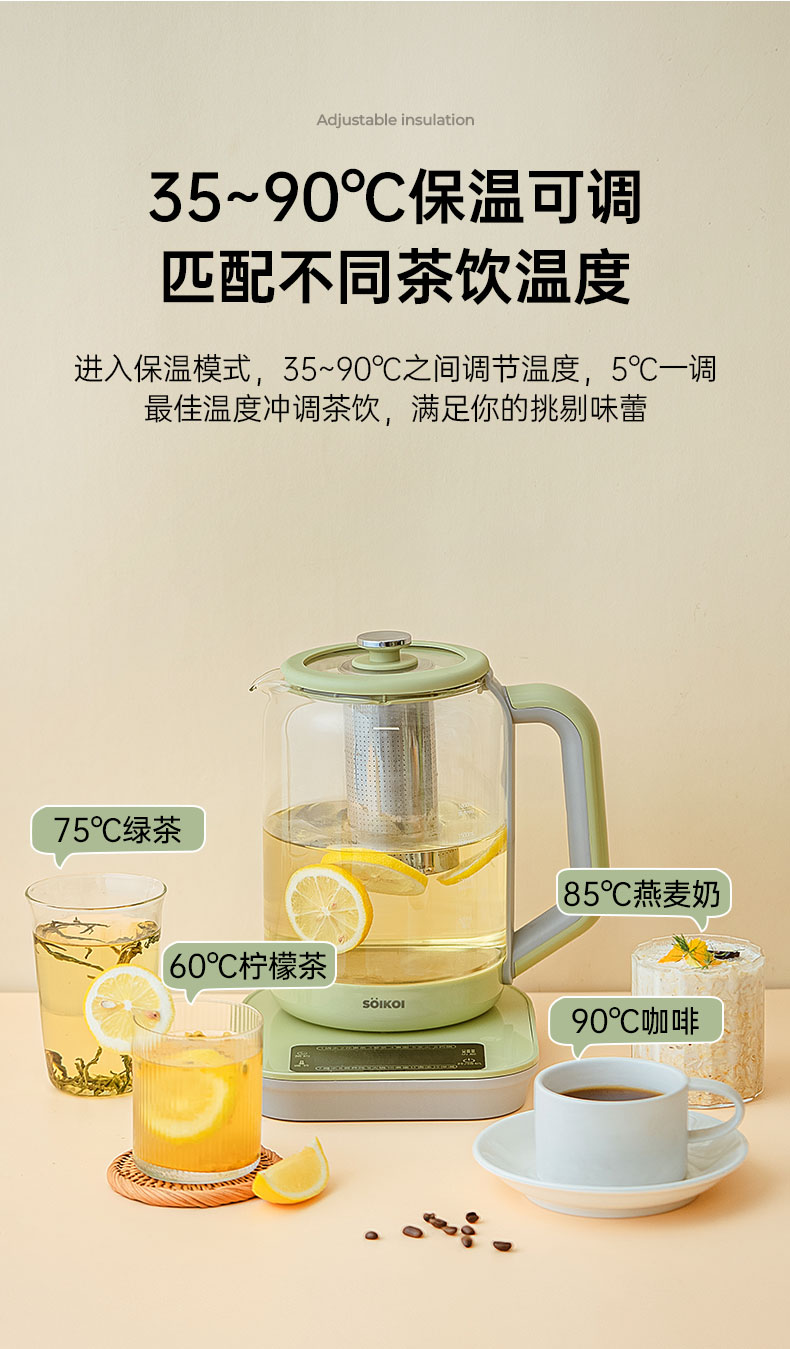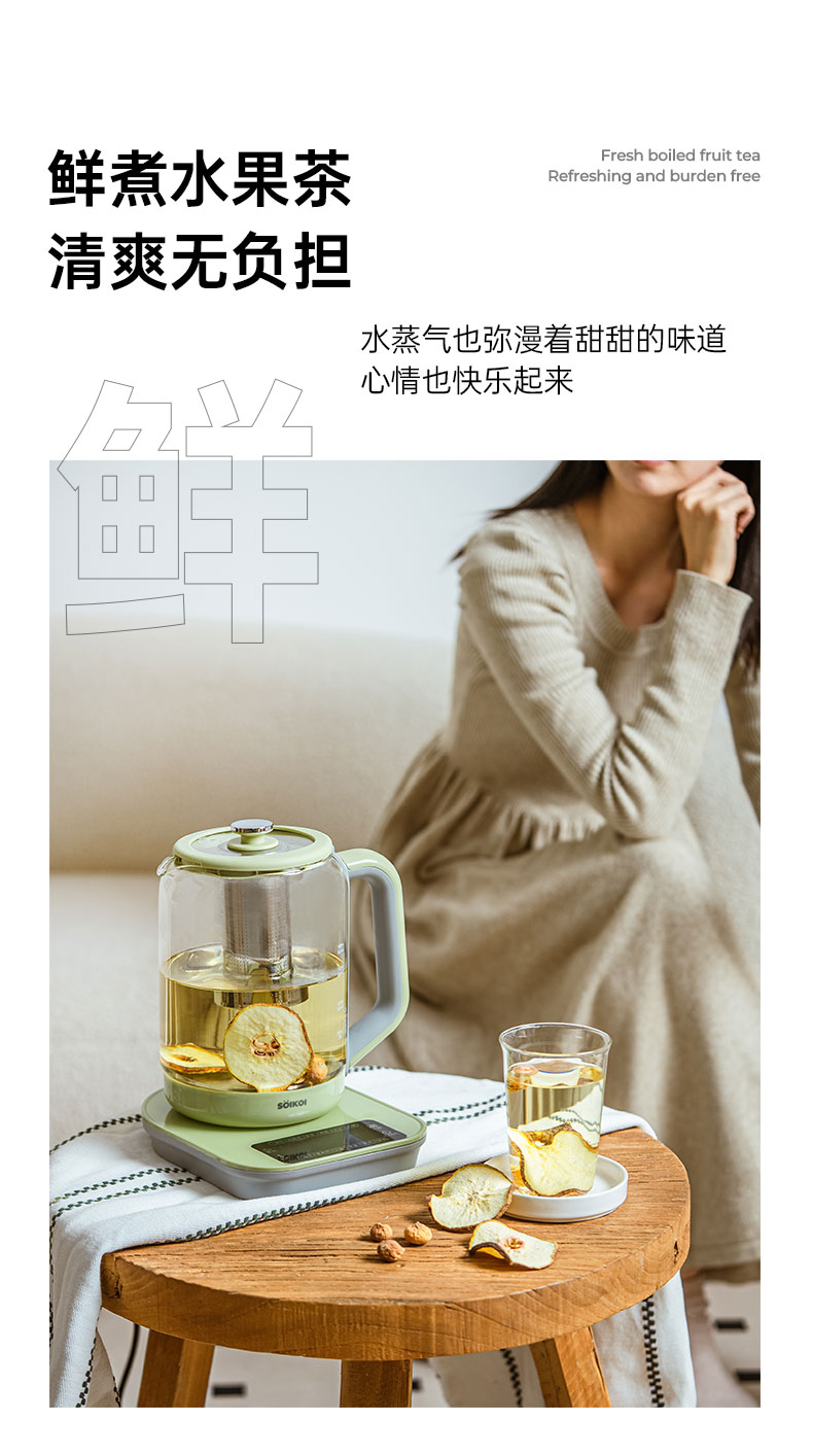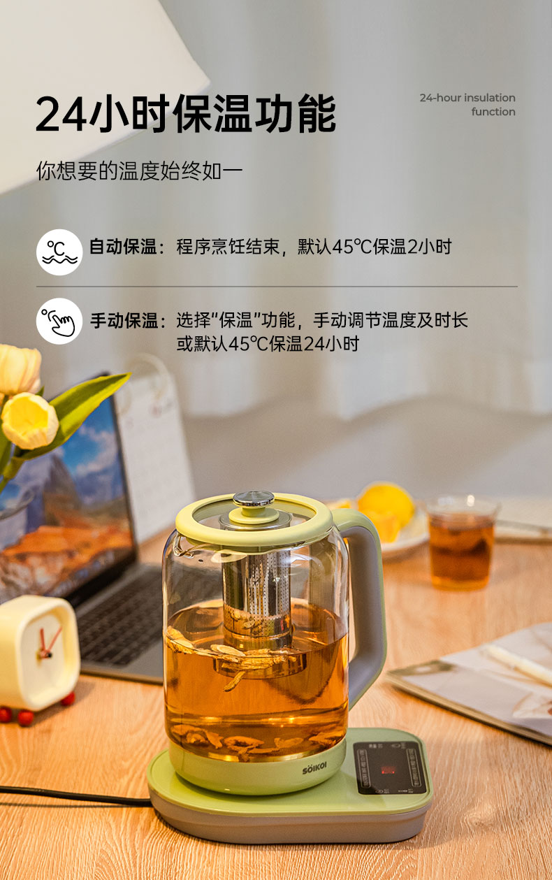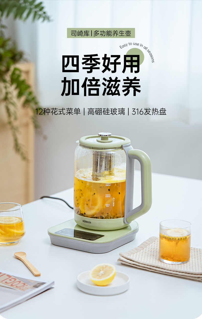 (巨邦佑)BJ+SOIKOI司崎库 多功能养生壶 1.8L CD-C918 全自动加厚高硼硅玻璃茶壶