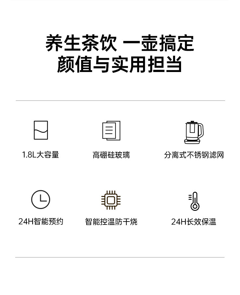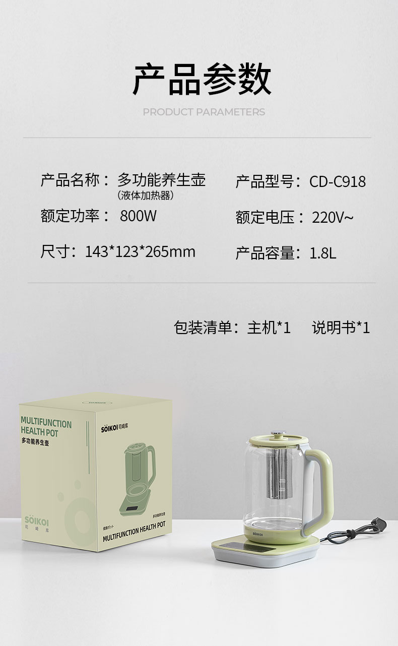 商品名称:(巨邦佑)BJ+SOIKOI司崎库 多功能养生壶 1.8L CD-C918 全自动加厚高硼硅玻璃茶壶