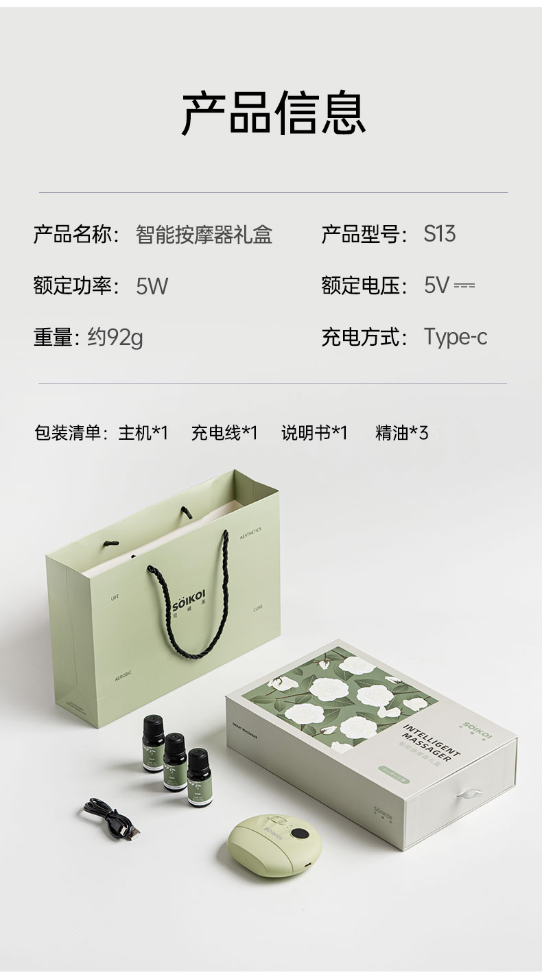 商品名称:(巨邦佑)BJ+SOIKOI司崎库 智能按摩器礼盒 S13 砭石推刮肩颈按摩