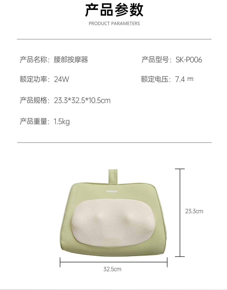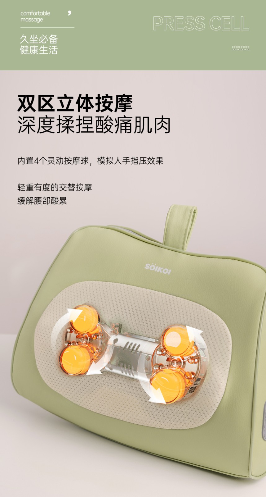 商品名称:(巨邦佑)BJ+SOIKOI司崎库 腰部按摩器 SK-P006 按摩仪智能颈椎背部肩颈按摩枕全身靠垫揉捏