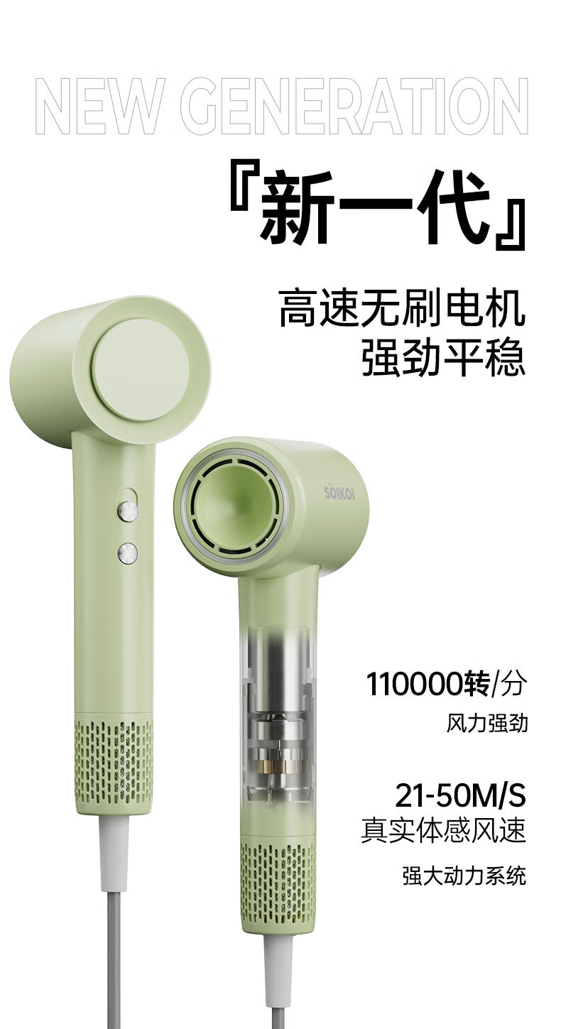 (巨邦佑)BJ+SOIKOI司崎库 高速吹风机 FL-F01 家用负离子护发速干大风力电吹风