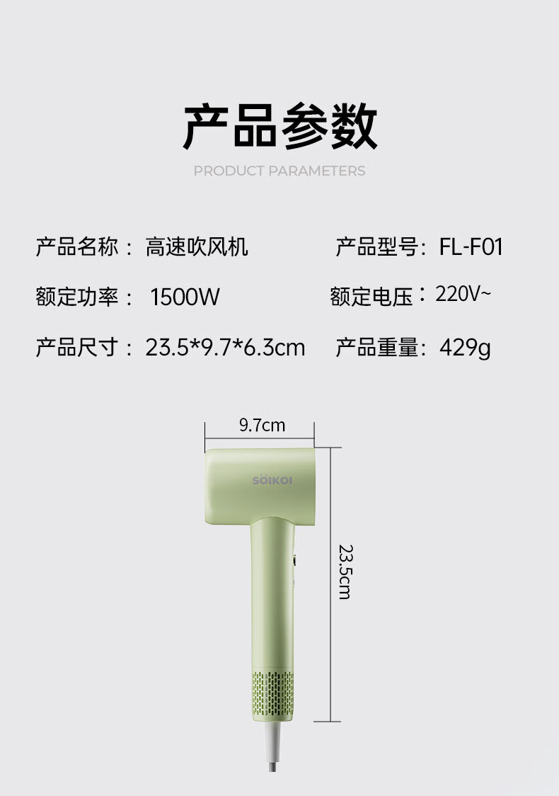 商品名称:(巨邦佑)BJ+SOIKOI司崎库 高速吹风机 FL-F01 家用负离子护发速干大风力电吹风