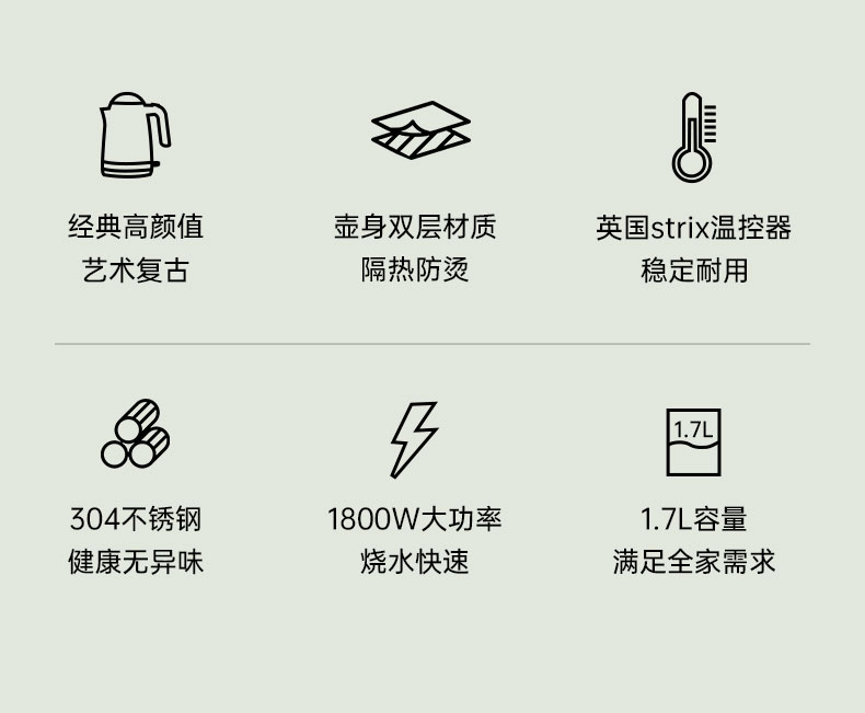商品名称:(巨邦佑)BJ+SOIKOI司崎库 经典复古水壶 1.7L SK-EK1860双层经典水壶