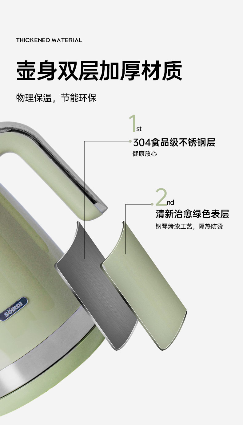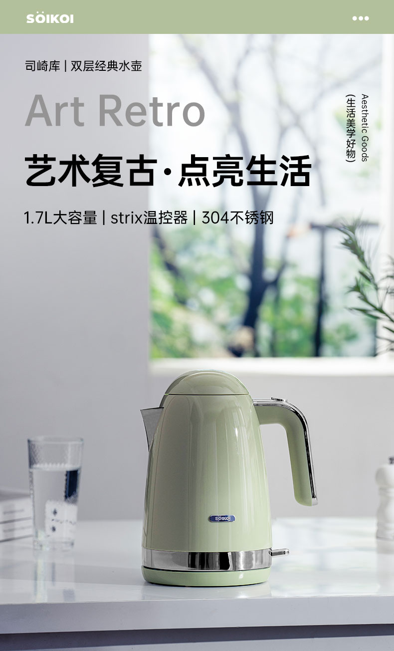 (巨邦佑)BJ+SOIKOI司崎库 经典复古水壶 1.7L SK-EK1860双层经典水壶