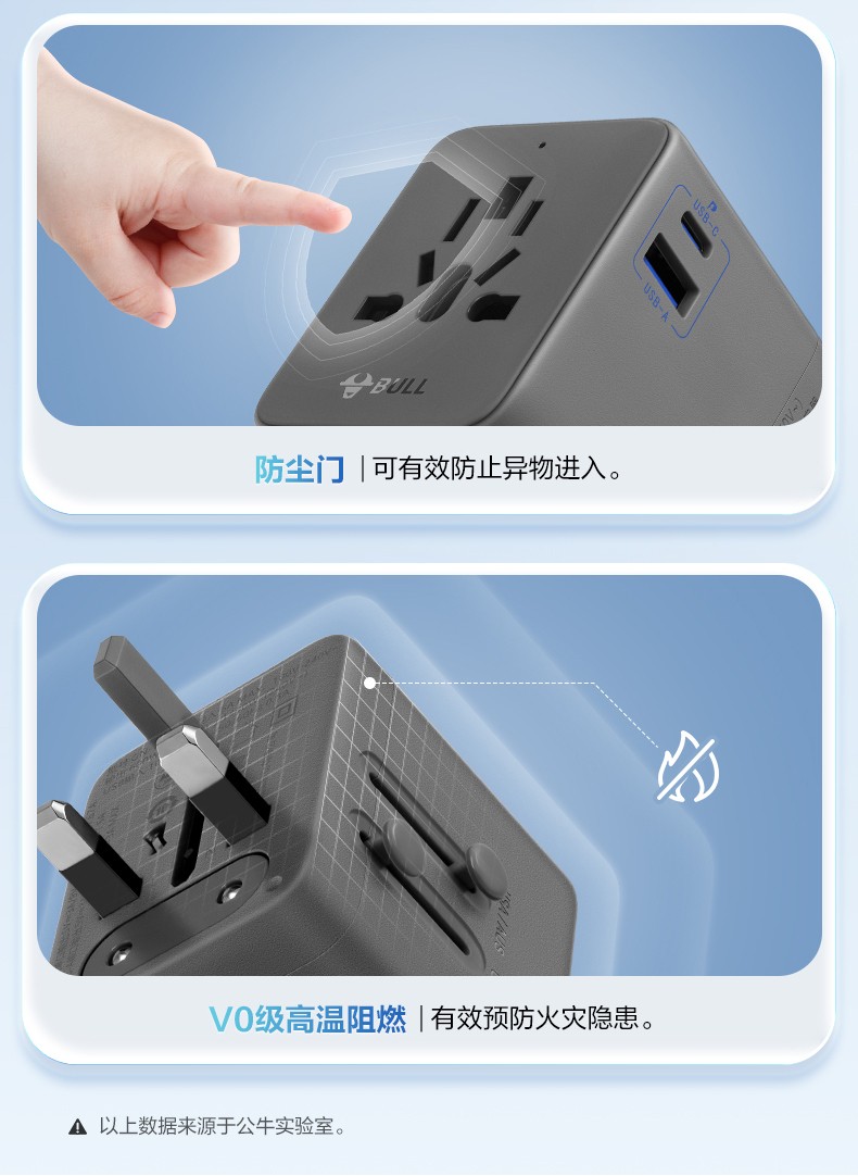 (超运·禾贸)公牛(BULL)20W PD快充USB多国旅行转换插头GN-L10U20 出国旅行出差留学超功率保护插头欧标美标澳标英标