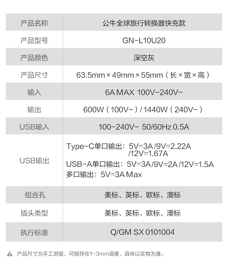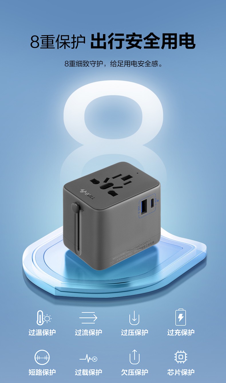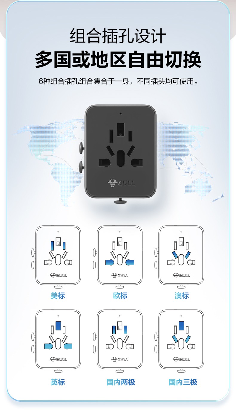 商品名称:(超运·禾贸)公牛(BULL)20W PD快充USB多国旅行转换插头GN-L10U20 出国旅行出差留学超功率保护插头欧标美标澳标英标