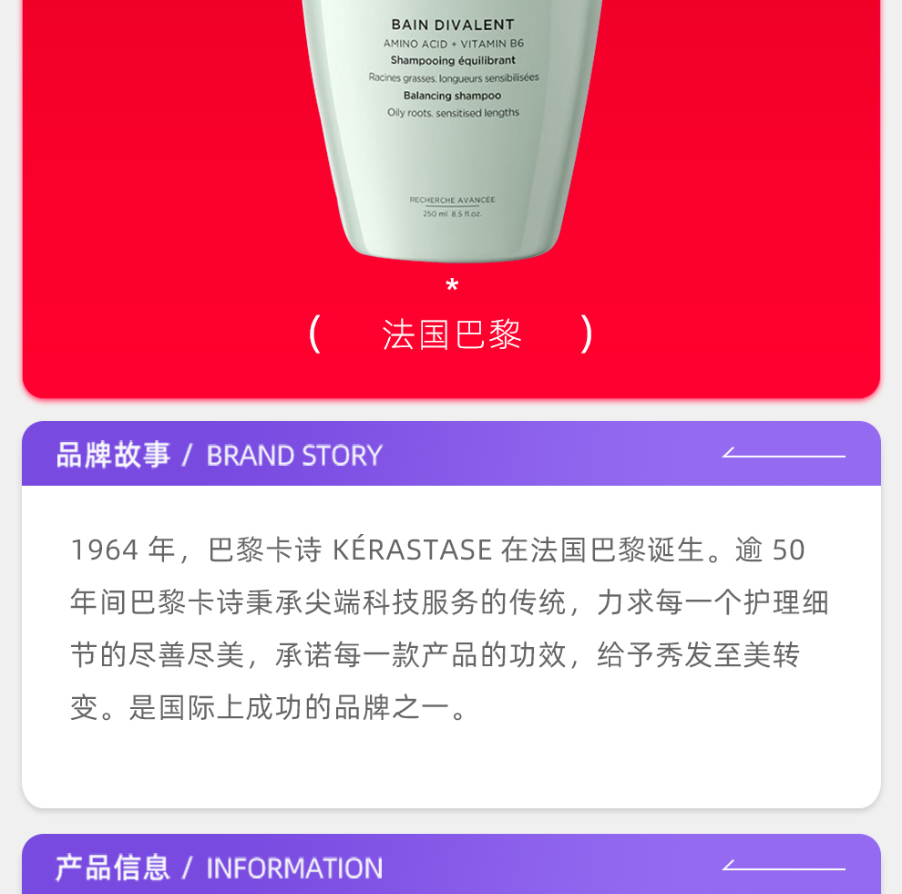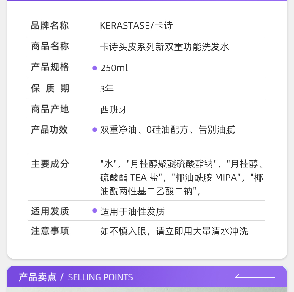 商品名称:(世星阳光)+卡诗头皮系列双重功能洗发水 250ml 无硅油温和清洁清爽控油蓬松