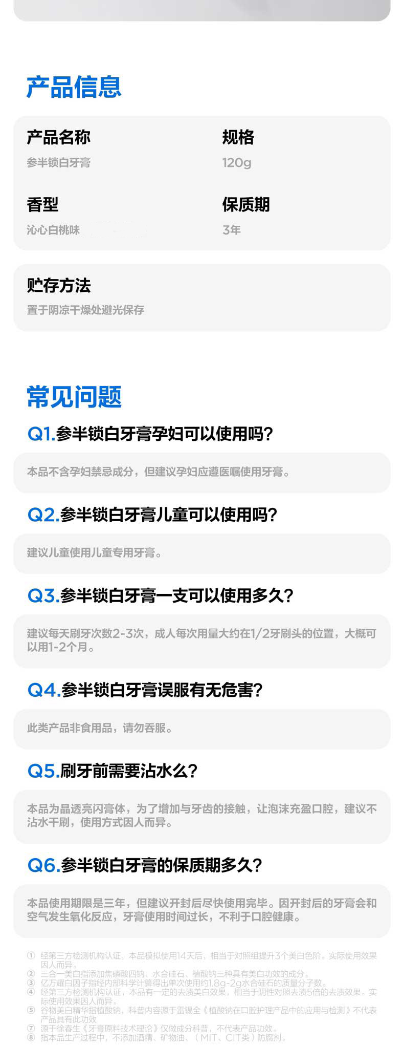 商品名称:(世星阳光)参半 沁心白桃味 锁白牙膏 美白去黄清新去渍防渍