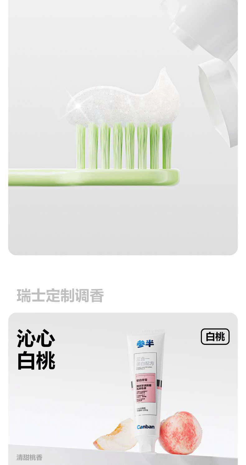 参半 沁心白桃味 锁白牙膏: