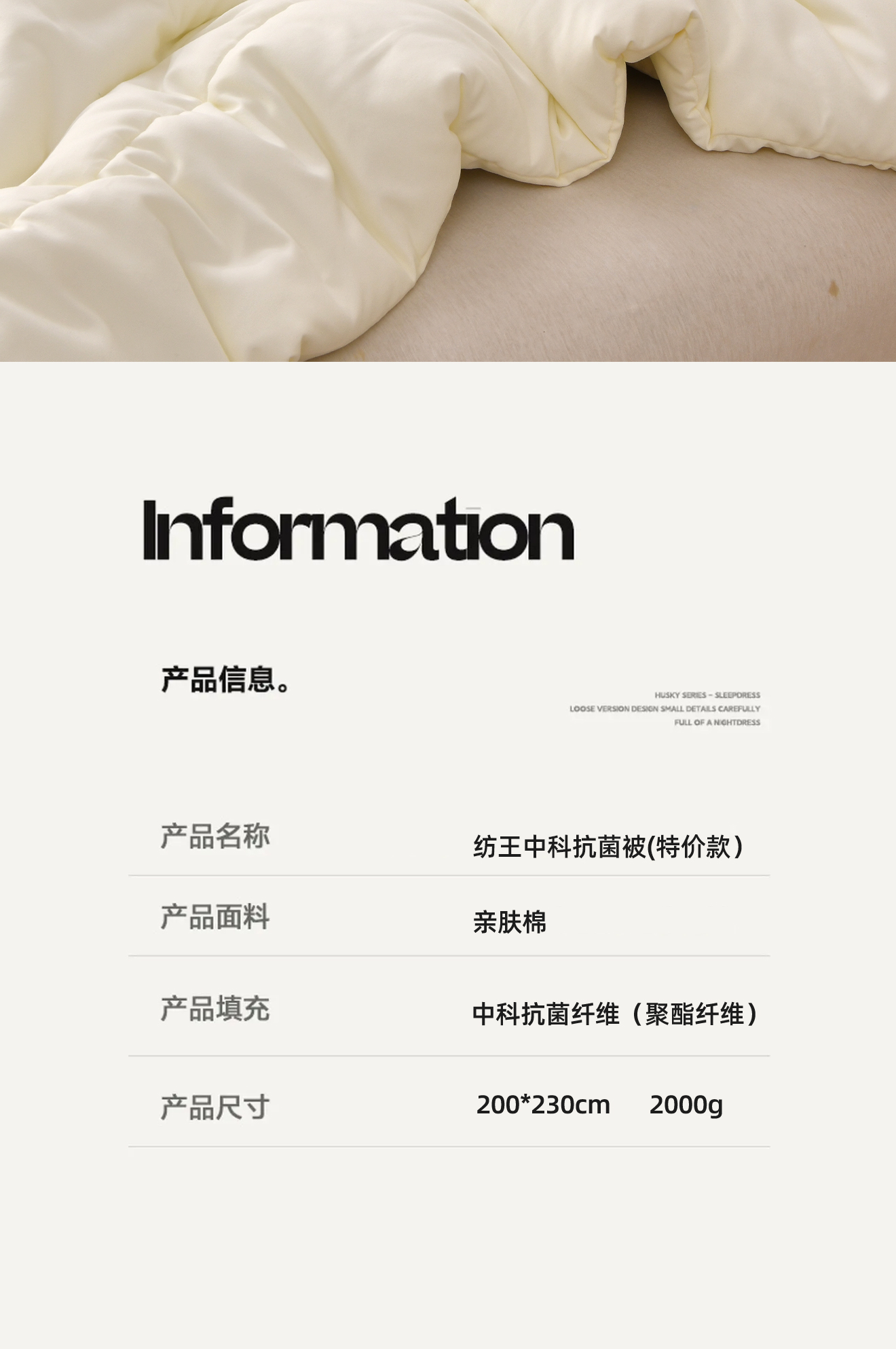 商品名称:(中合誉品)纺王中科抗菌被200*230cm 超柔床品 中科抗菌被 锁住冬日暖窝·