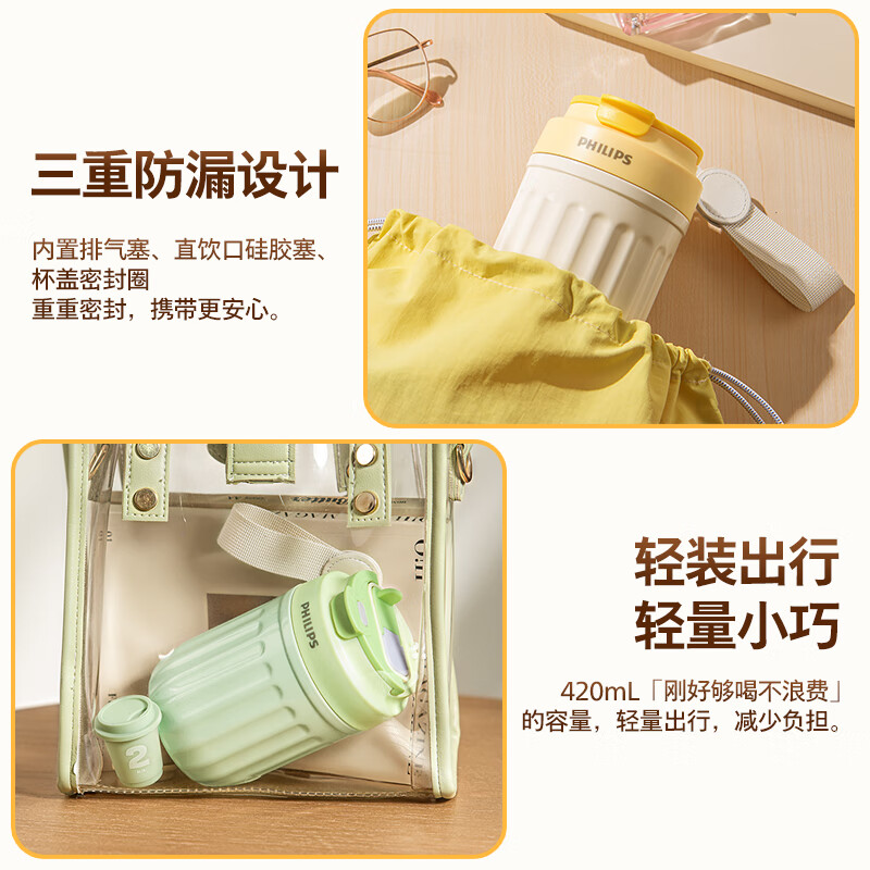 商品名称:(巨邦佑)BJ+飞利浦 咖啡保温杯 420ml AWP2575随行316不锈钢内胆咖啡杯