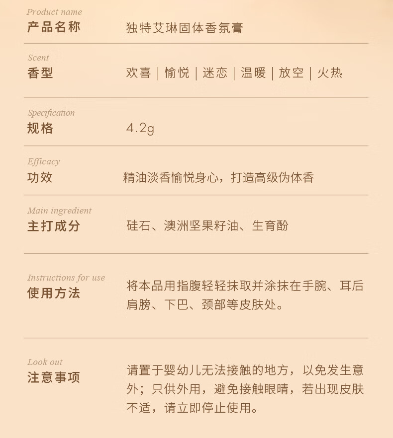 商品名称:(巨邦佑)R+独特艾琳固体香氛膏 便携式固体香水怀表香膏 全身可用24小时留香 欢喜