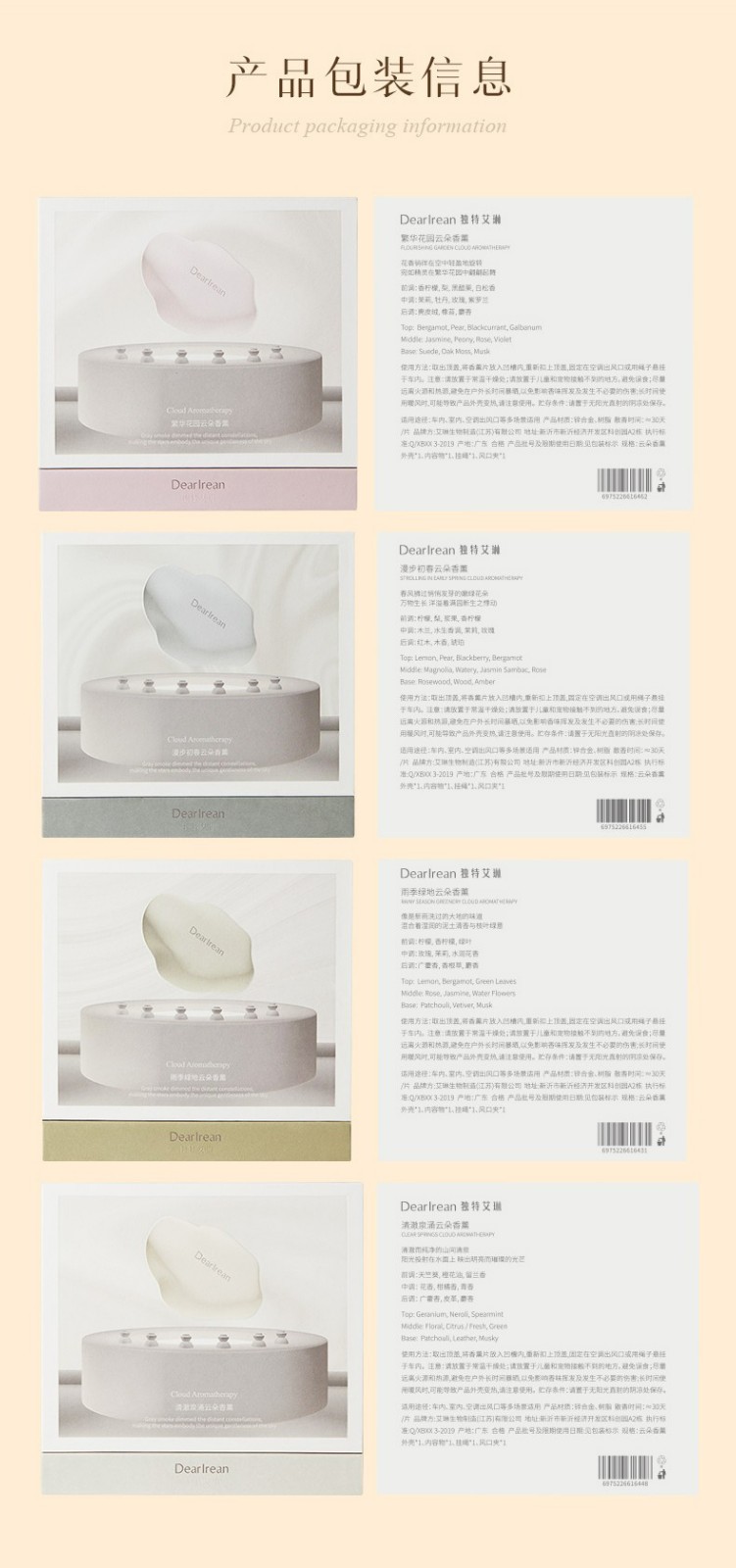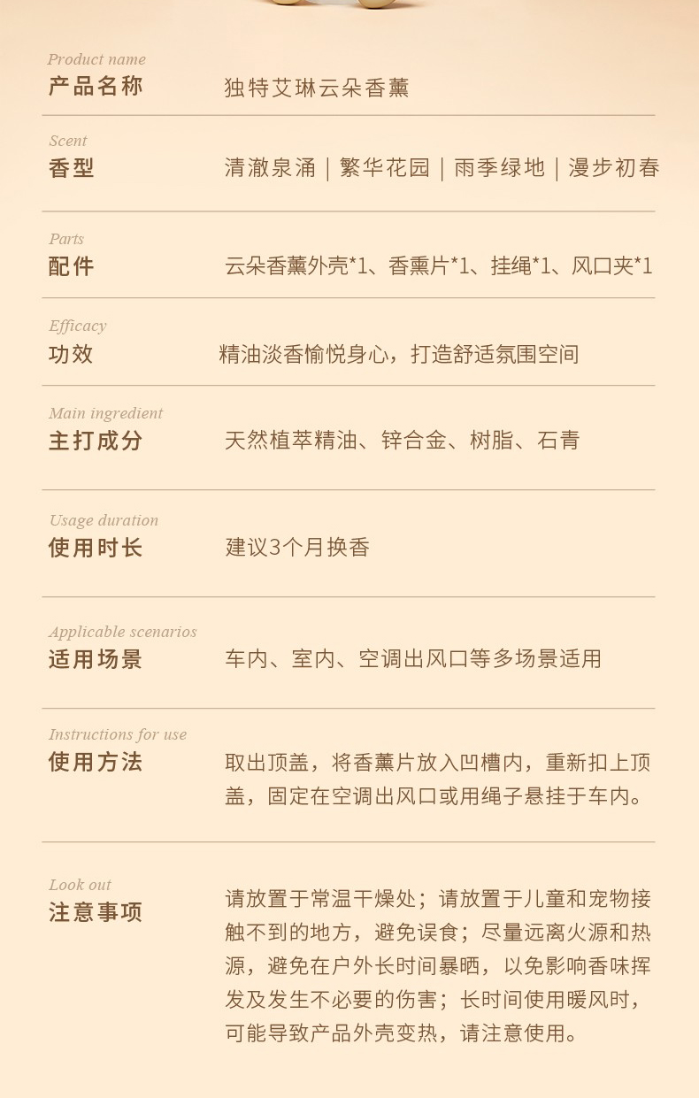 商品名称:(巨邦佑)R+独特艾琳云朵香薰汽车内香氛摆件 高级淡香氛 汽车香水车挂 繁华花园