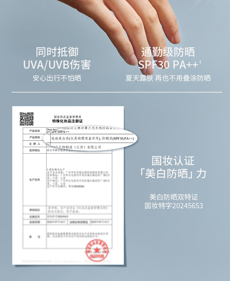 商品名称:(巨邦佑)R+独特艾琳(Dear lrean)清透水感防晒液SPF50+PA++++50ml 全身美白防晒 均匀肤色 自然留香