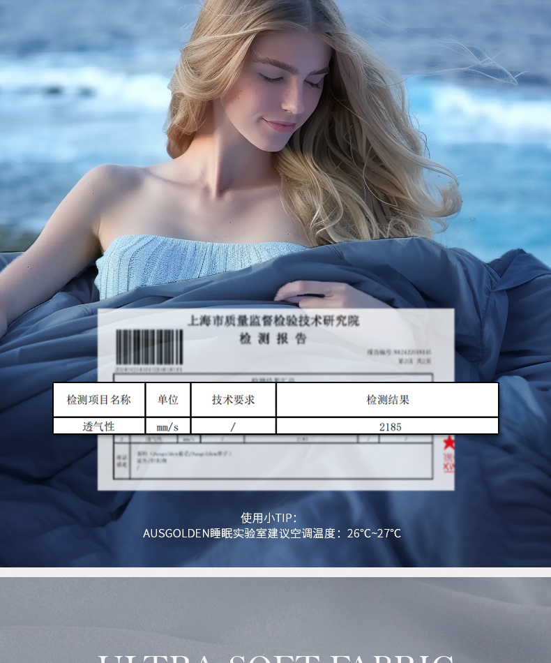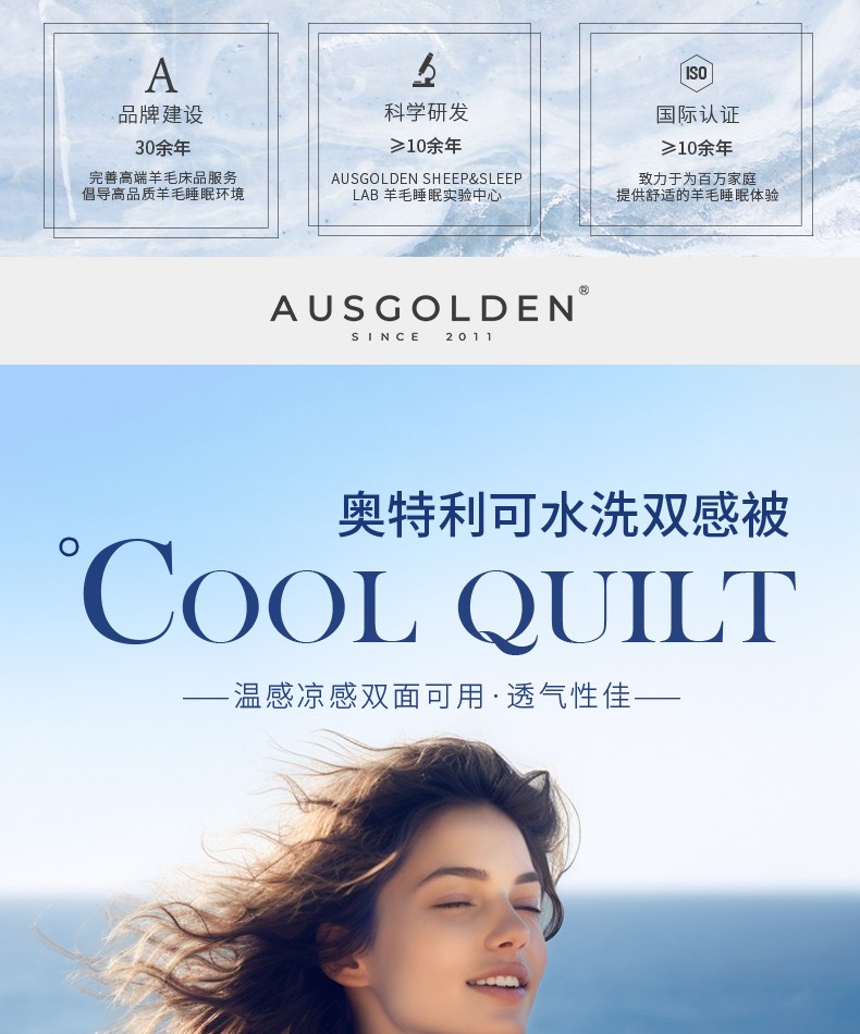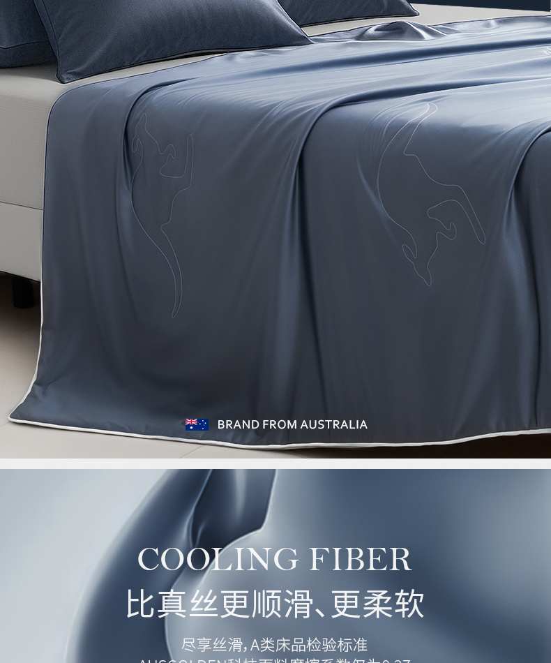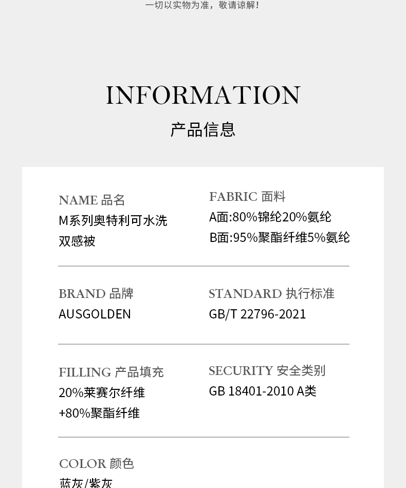 商品名称:(巨邦佑)BJ+AusGolden M系列奥特利可水洗双感被 A面:80%锦纶 20%氨纶 夏季奥特利天丝凉感被A类冰丝双感被凉感值0.29透气柔软空调被