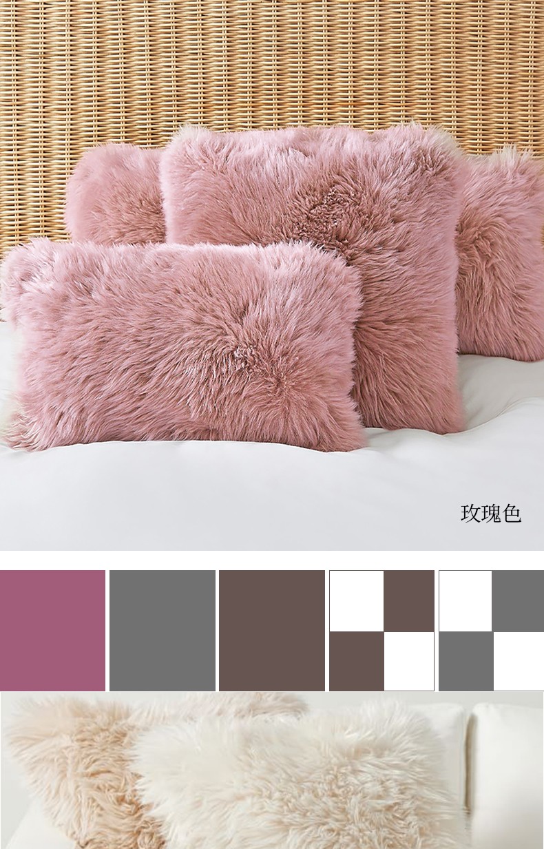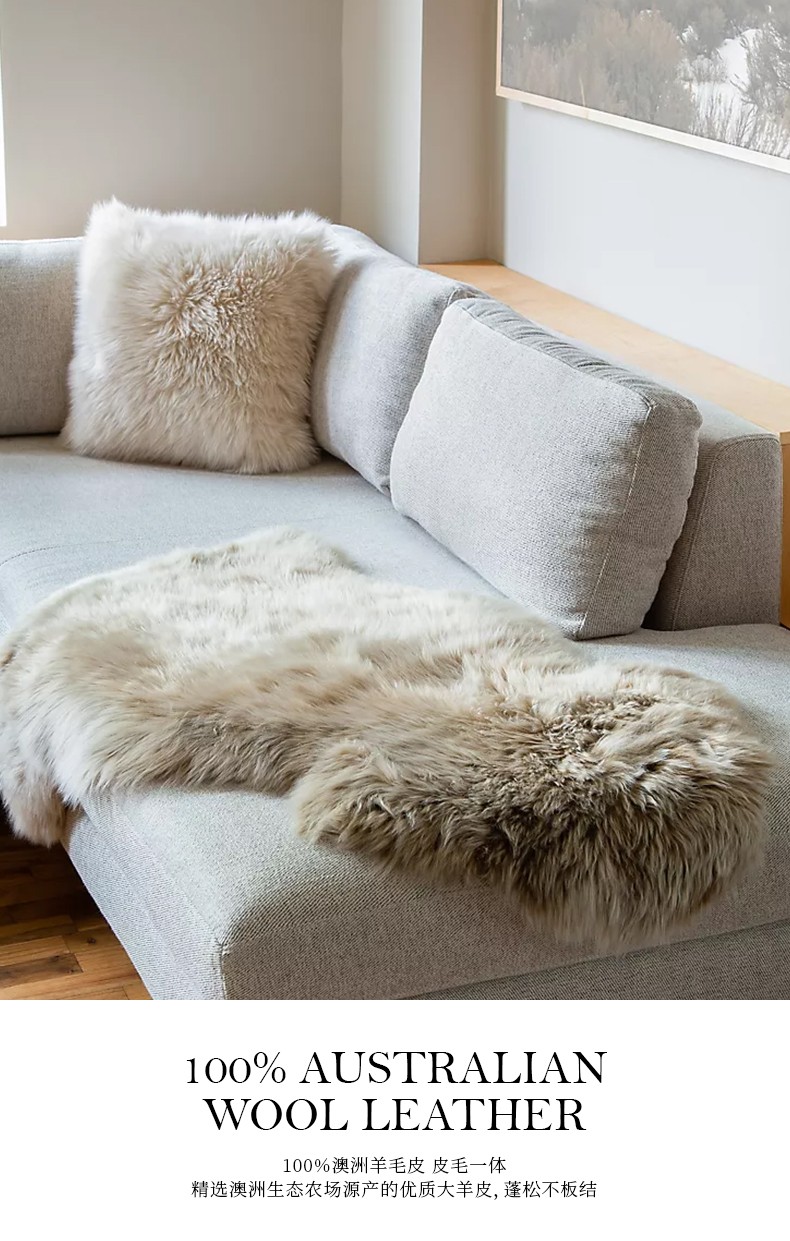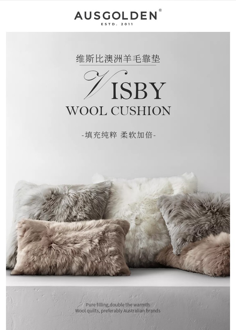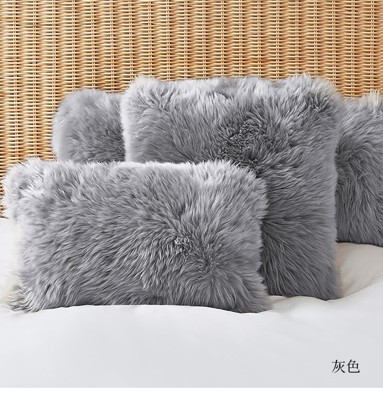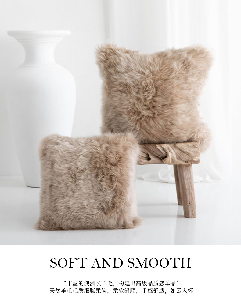 (巨邦佑)BJ+AusGolden 维斯比方格羊毛靠枕套(不带枕芯)45*45cm 面料:100%澳洲羊毛皮 底布麂皮绒 坐垫进口羊毛垫办公室椅垫冬季毛绒皮亲肤柔