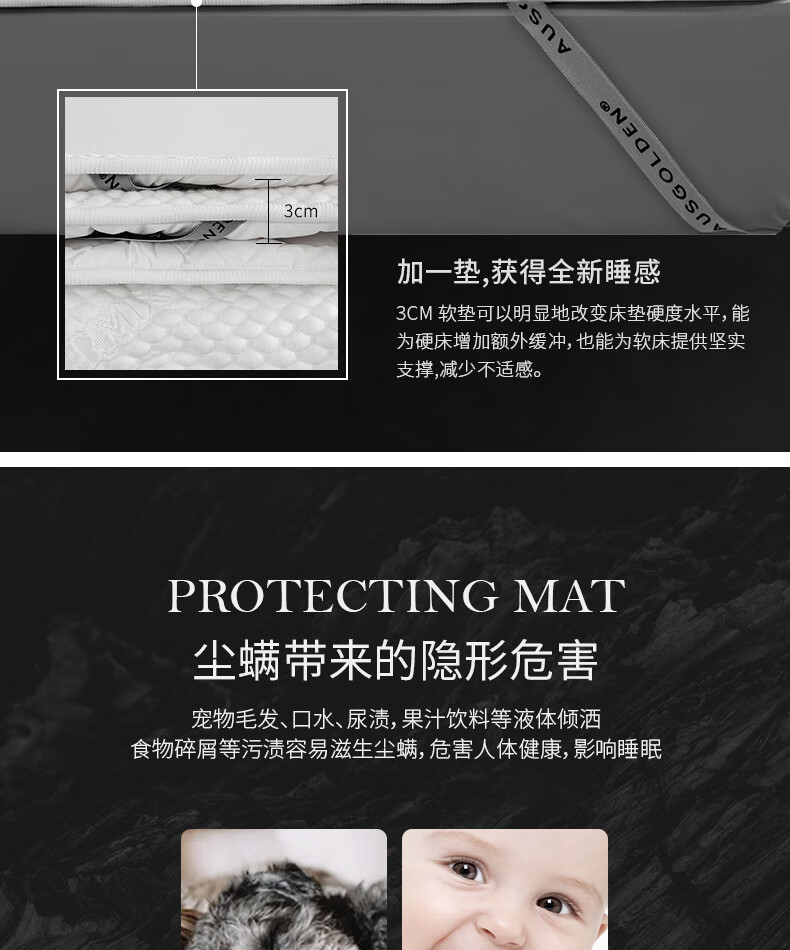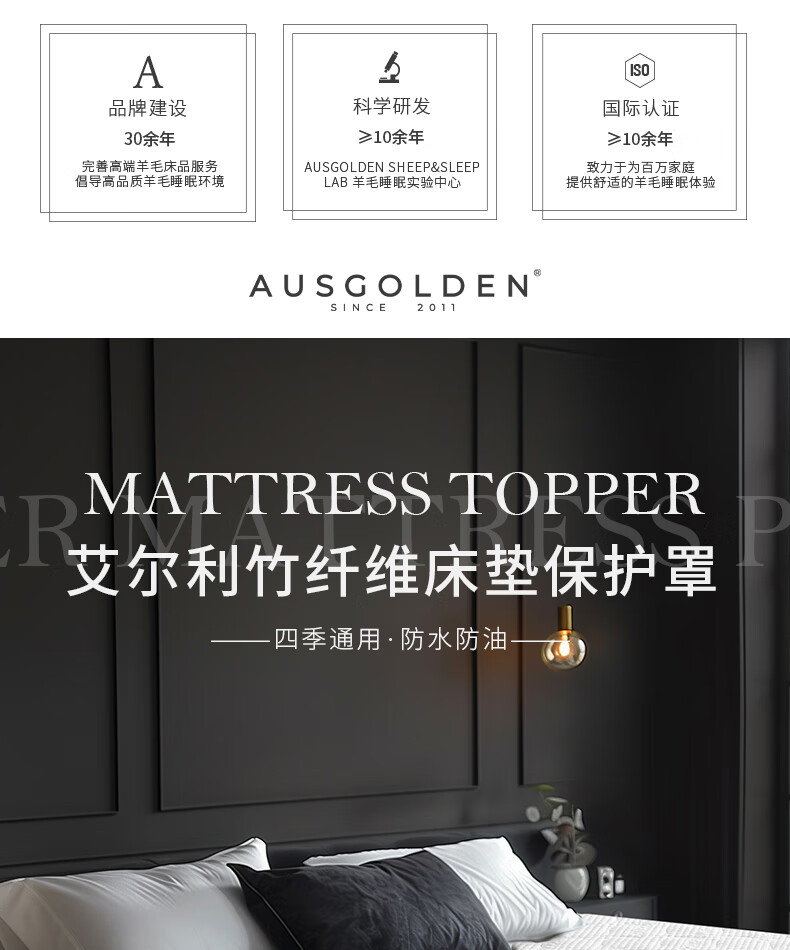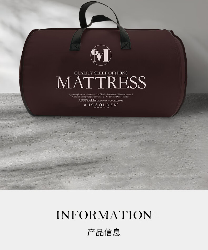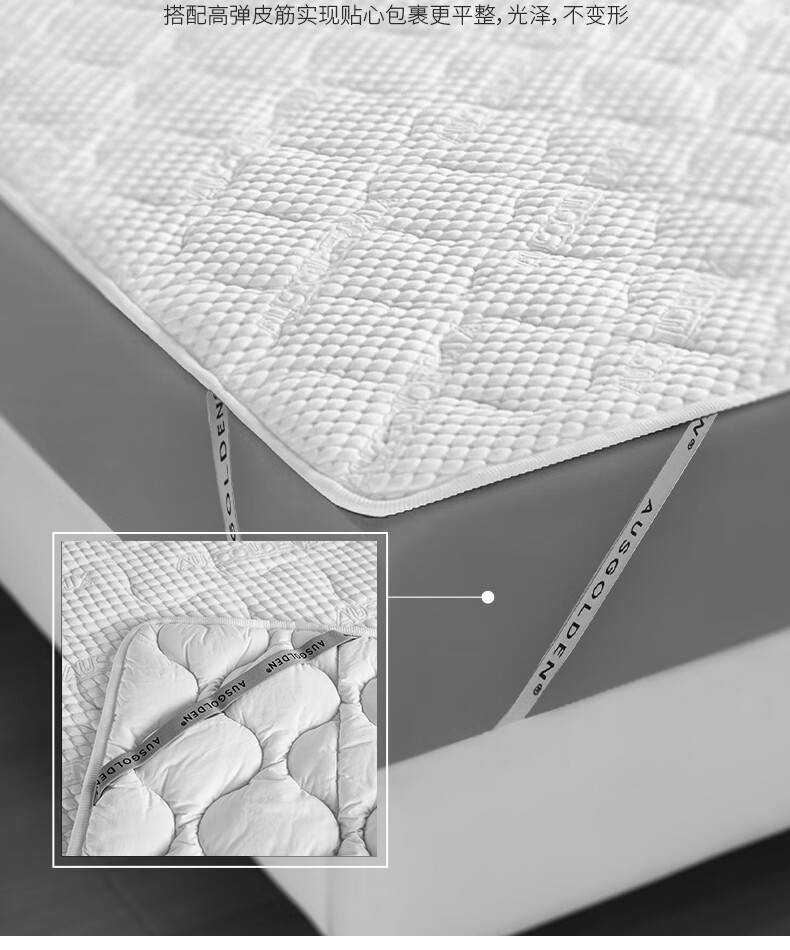 商品名称:(巨邦佑)BJ+AusGolden M系列澳洲进口羊毛床垫保护罩 面纱: 100%粘胶纤维 底布:100%聚酯纤维 A类防螨抗菌席梦思 保护学生宿舍床垫透气防汗